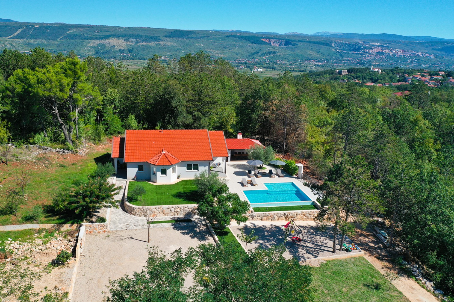 Welcome to Villa Green Escape, a stunning 4-bedroom villa designed for comfort and relaxation, nestled on a generous 3000 sqm private plot in the tranquil village of Grubine - Ivanbegovina. This captivating getaway offers absolute privacy for up to 8+2 guests and features a luxurious 58sqm infinity pool, a media room, and countless amenities for a carefree family holiday.