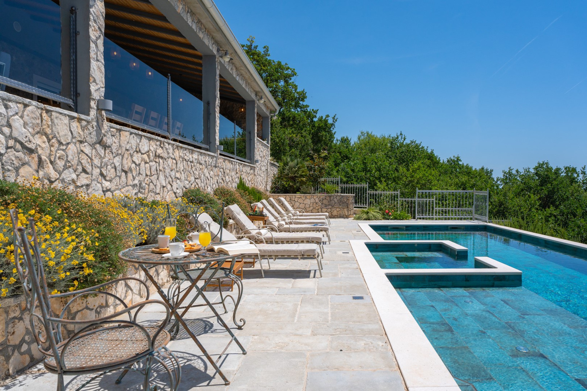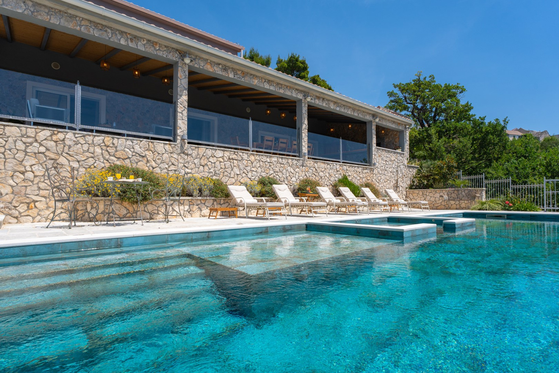 Villa Granda Lokva with 54sqm heated pool, sea views, 10 pax 5 en-suite bedrooms, heated pool with attached hydromassage, spectacular sea views, 1,7km from beach