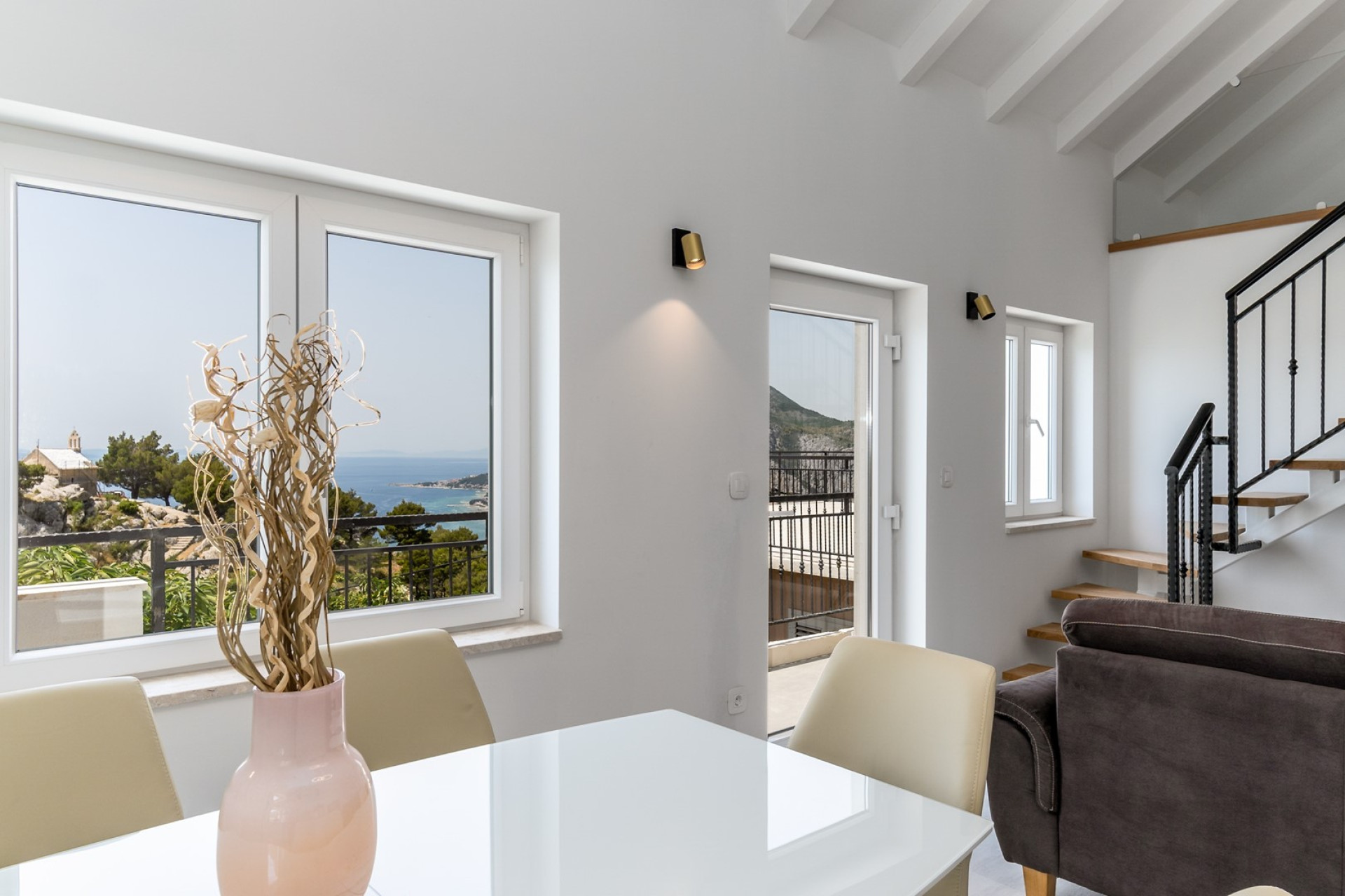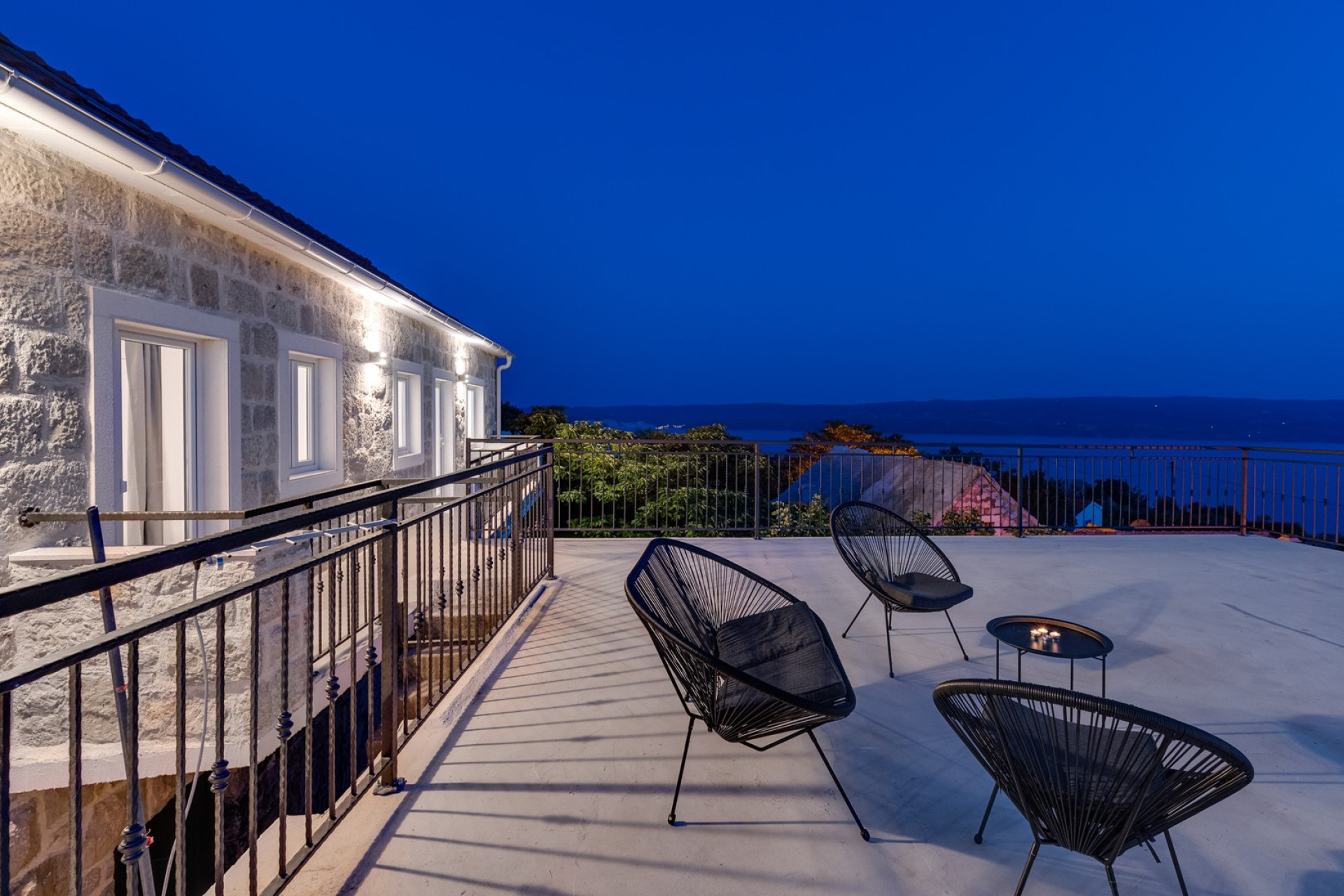 This beautiful stone villa is newly built on an old family stone house, following the traditional architecture and stone facade, connecting it with modern and very pleasant details to make your stay very comfortable and unforgettable. Villa The King is a well-equipped 135sqm house organized on two floors connected by an internal staircase, and a separate apartment connected with the outdoor staircase (all offered exclusively for one group). It is nestled on a 340sqm fenced property, and it is situated at the end of the street in a quiet area named Borak above small town Omiš (3km).