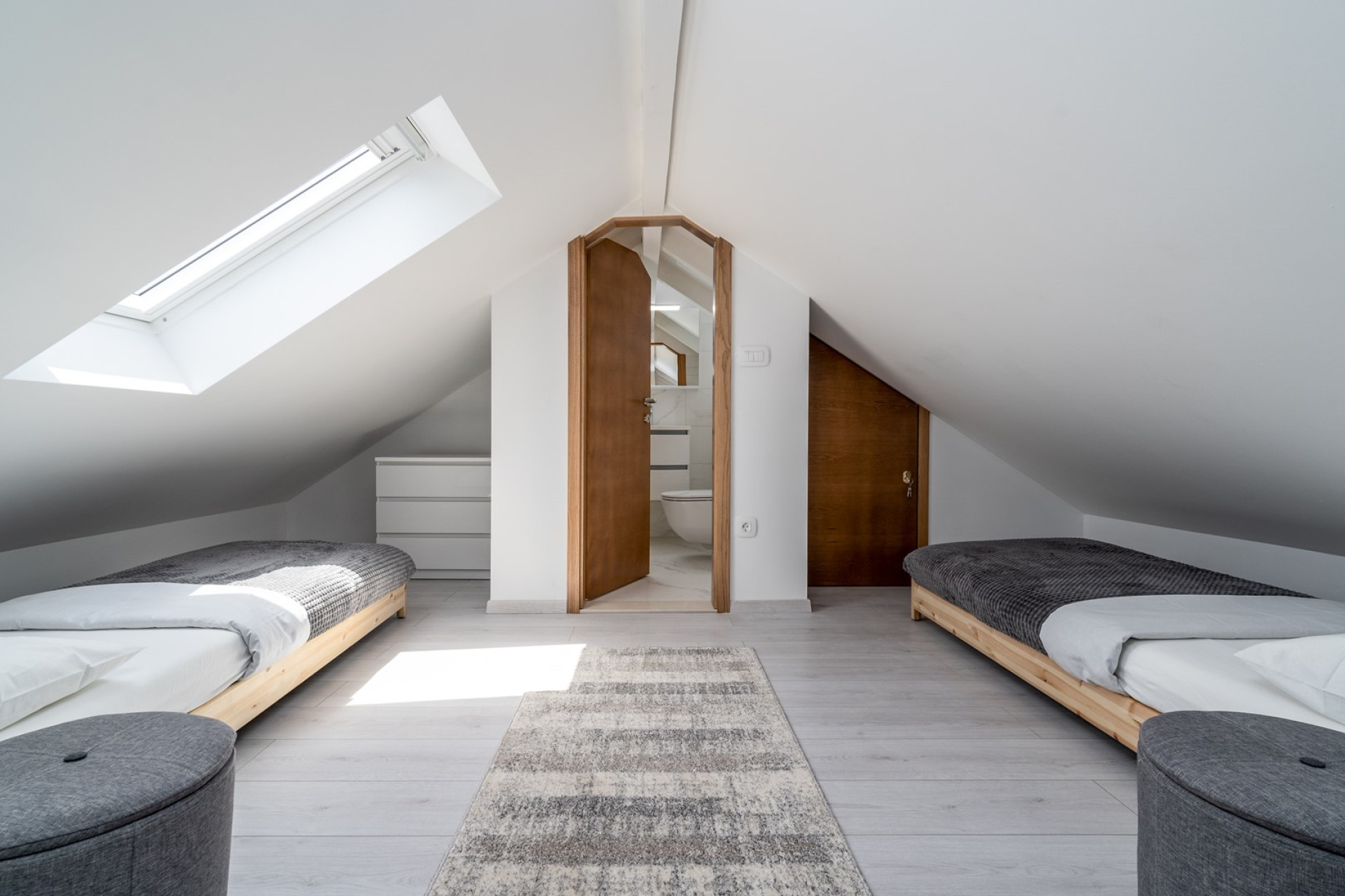 * The 1st FLOOR is reached with an indoor staircase that leads you up to an opened and very cute attic Bedroom No3 (15sqm) with 2 single beds 80cm x 200cm and a separate toilet with a sink.