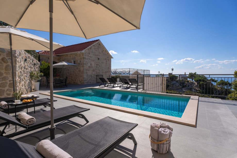 New! Villa KING with private pool with hydromassage, 4 bedrooms, 3km from sea and town Omiš. Stone house in a traditional environment with amazing views of the islands, Adriatic sea, and Omiš