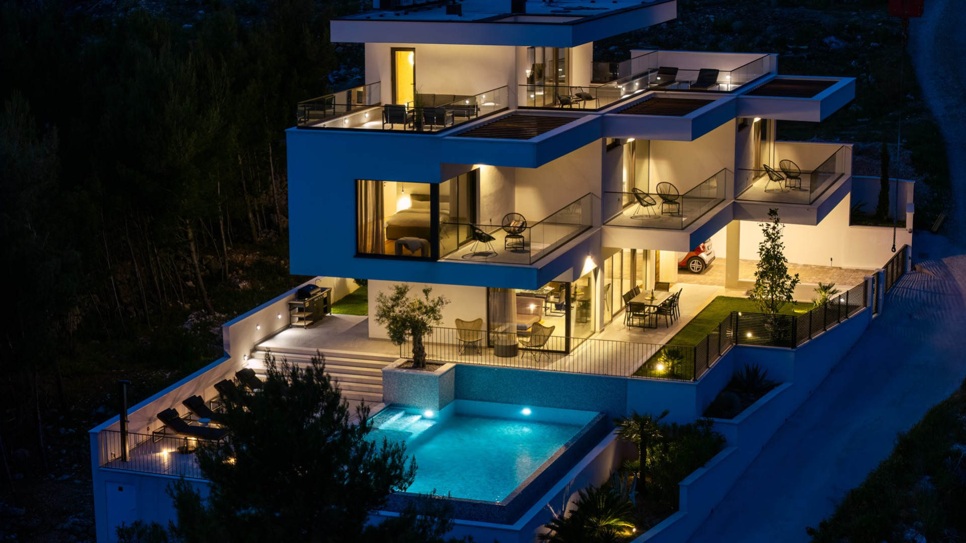 Welcome to Villa Briig— Your luxurious seaview sanctuary nestled in the tranquil village of Mali Rat on the stunning Omis Riviera. This magnificent four-en-suite bedroom villa is a perfect blend of modern elegance and Mediterranean charm, designed for those seeking an unforgettable escape. Fully air-conditioned and equipped with complimentary WiFi, Villa Briig spans three thoughtfully organized levels, each featuring high-end furnishings and meticulous attention to detail. Accommodations: Villa Briig elegantly hosts up to 8 guests in its stylishly designed interior.
