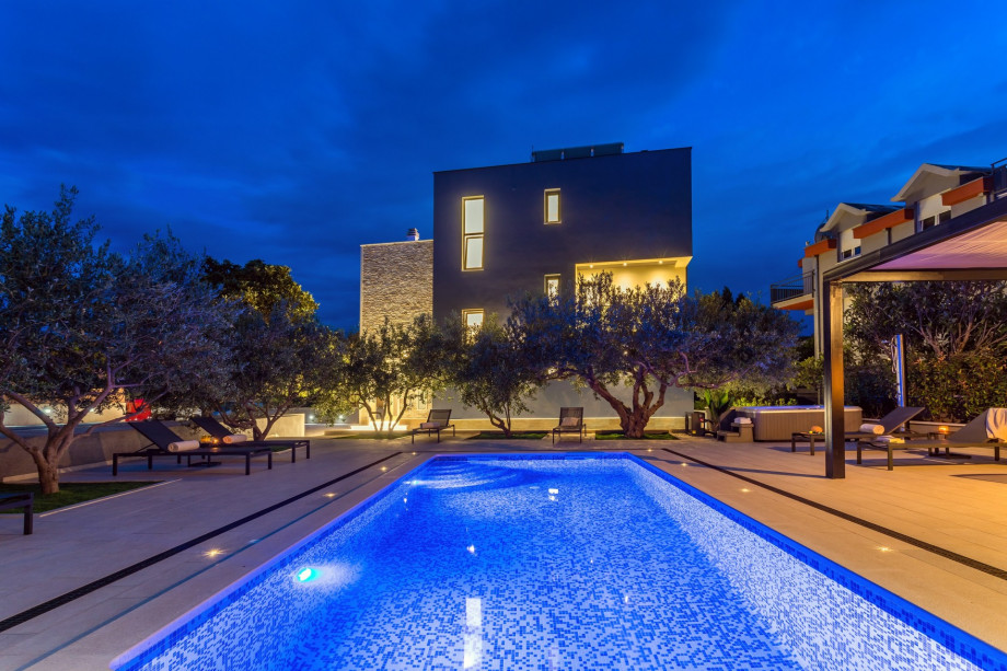 It Is settled on the 890 sqm property and offers a private, heated swimming pool, two whirlpools, fully equipped gym, a sauna room, billiards, PS4, and fully equipped 5 en-suite bedrooms. A fully air-conditioned interior is covered with free WiFi. With a living space of 440 sqm, the villa offers very spacious interiors all furnished in high quality.