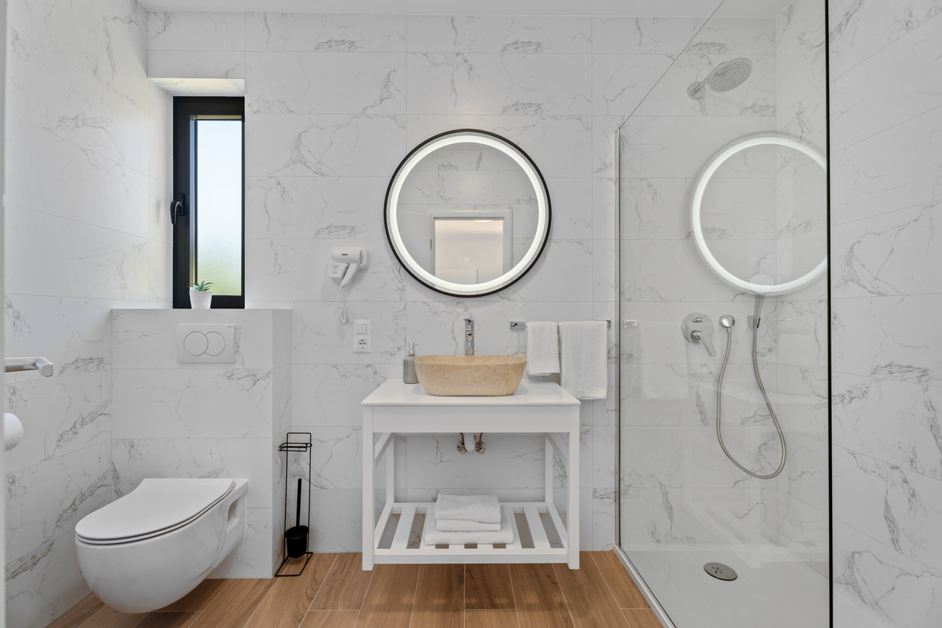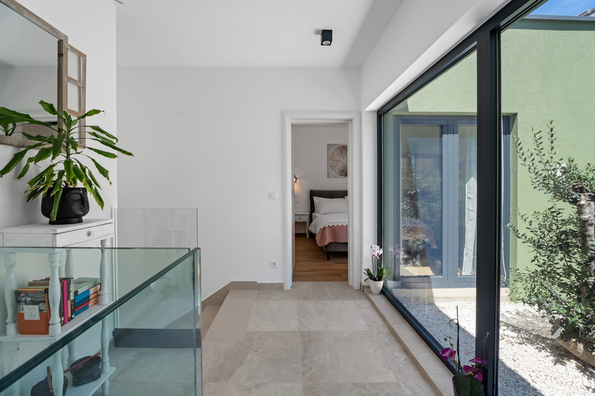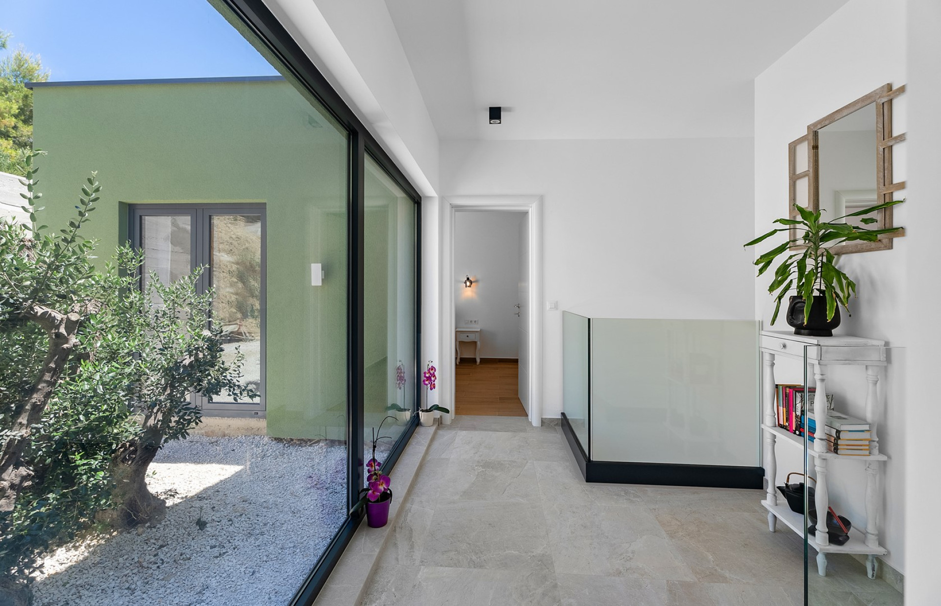 The most popular tourist attractions on the Central Dalmatian coast are only half an hour away from the famous town Split with its great history, Trogir, 45 minutes away, and up to a 1.5-hour drive to visit the beautiful Krka waterfalls, Skradin. The nearest airport is SPU Split's airport (38 km). Also, you can do various sports at the beach and experience a well-organized active holiday like windsurfing, sailing, and diving; you can even try riding horses only 18 km away with the Enquino Club (Podstrana); and many more. Due to the vicinity of the town Split, all traffic communications are near (around a half-hour drive): the airport (35 km), seaport (25 km), bus station for international traffic (25 km), railway station (25 km), and the motorway (35 km). Golf and tennis courts are only 18 km from the villa.