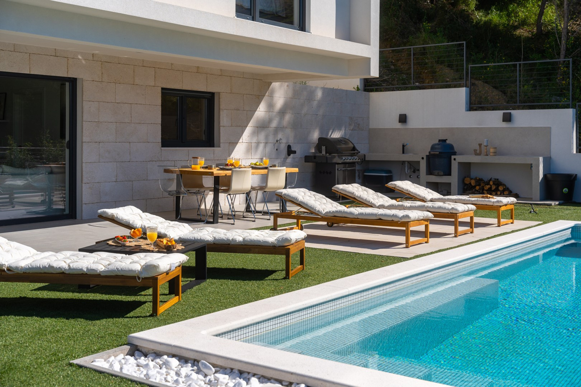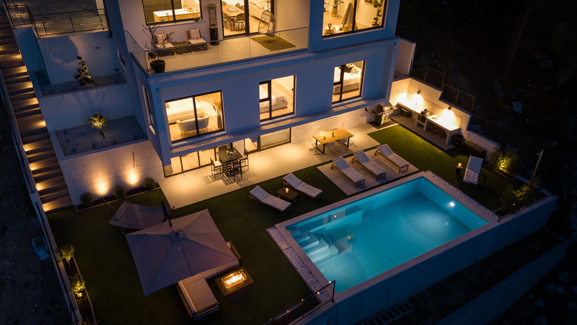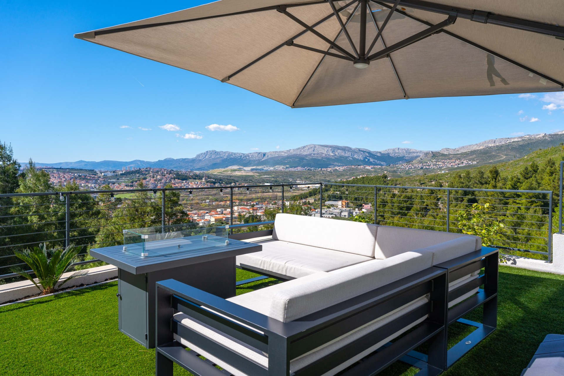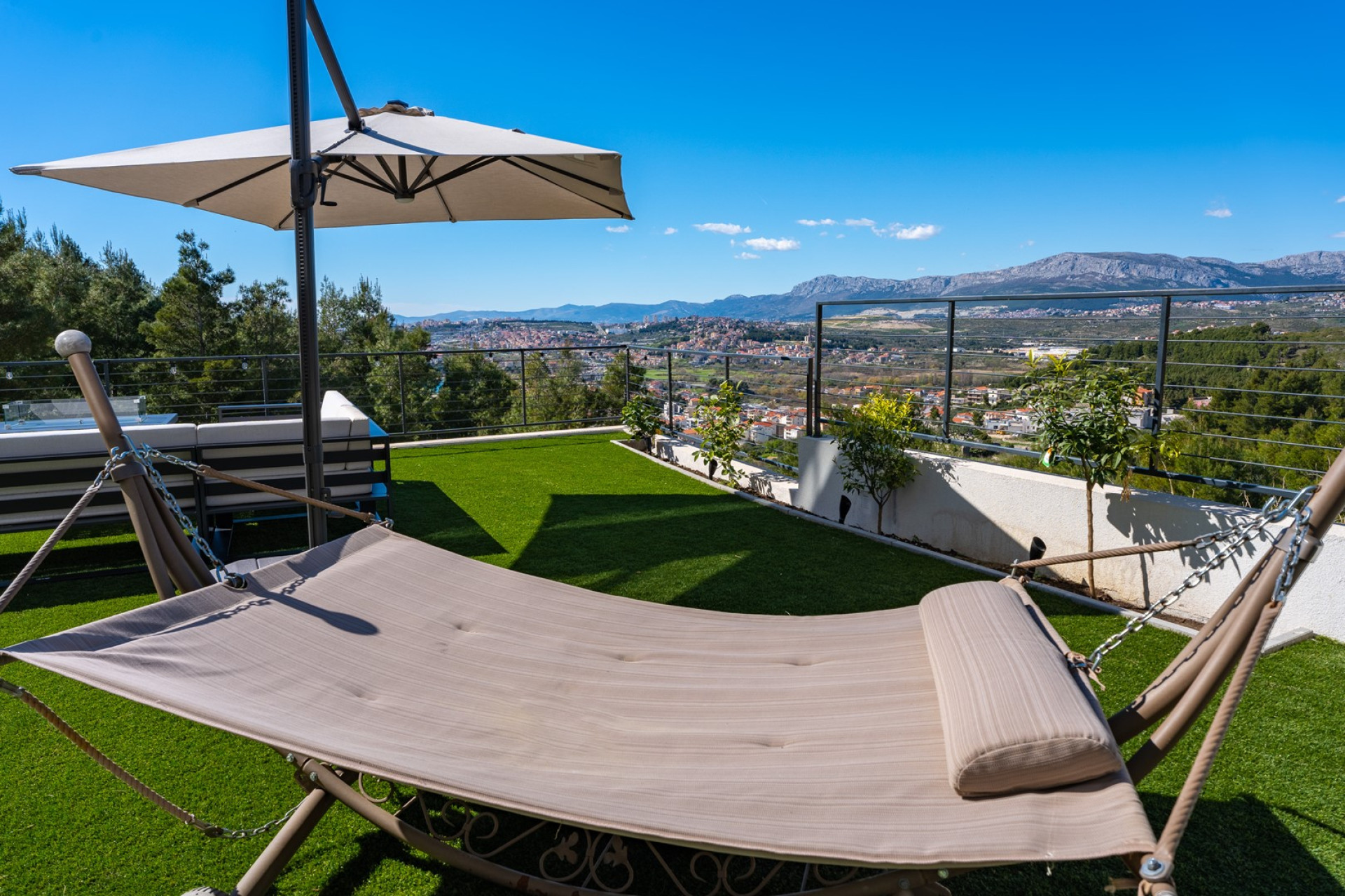 This beautifully decorated holiday accommodation sets a stylish tone with contemporary architecture and chic furnishings in 270sqm of nicely decorated interior spread on a 600sqm private plot. It is fully equipped with everything the modern guest needs for a very comfortable stay and the perfect getaway with free high-speed internet, an in-house Sonos sound system, sophisticated and fully equipped two kitchens, and a heated outdoor pool. As the name of the villa says, you will certainly enjoy the evenings on one of the terraces with a view of the city of Split and Stožanac bay, with a glass of local wine enjoying the sunsets.