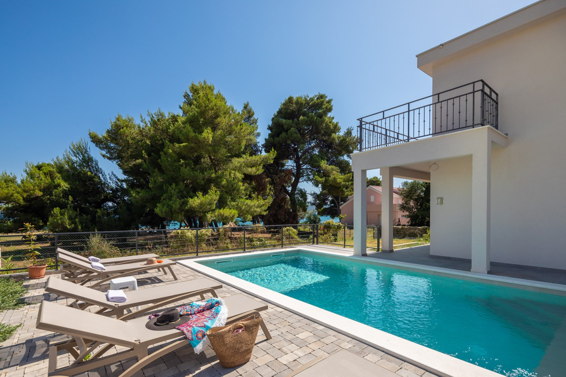 Beachfront villa Pensa with 3 en-suite bedrooms, 4th bedroom with sofa bed, private pool, playground, 6+2 people