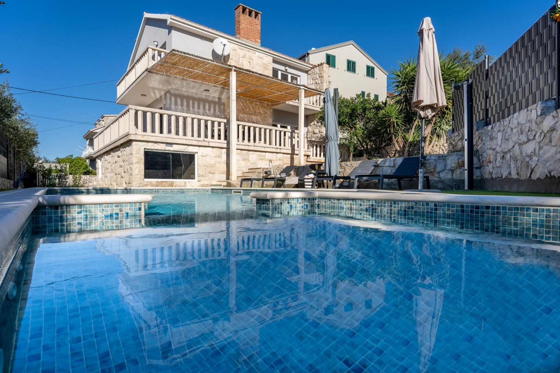Fully air-conditioned 4-bedroom villa with heated private pool, short walking distance to the beach (220 m), restaurants, and shops, only 3km from town Trogir.