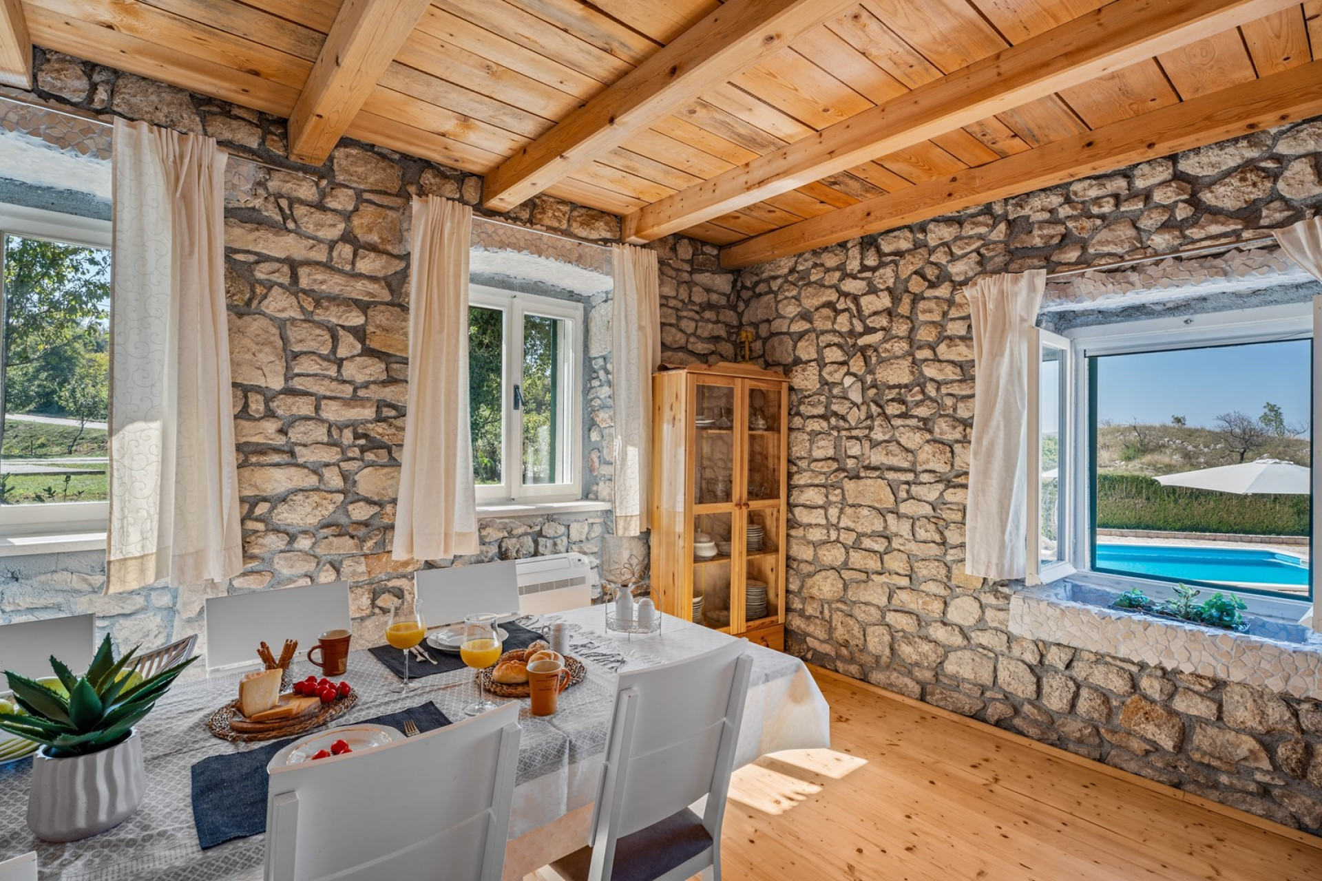 Hacienda Sylvia is a very comfortable villa of 236 sqm living space situated on a 1.000 sqm private plot overlooking the valley of Studenci village. This unique holiday home offers peace and tranquility away from the hustle and bustle of everyday life. This unique villa is organized into two units, and both are offered exclusively for you. It is packed with charm and character throughout, with a stunning 100-year-old stone house with exposed beams, all recently renovated, together with the modern interior of the main house, making this accommodation an exceptional and unique holiday home.