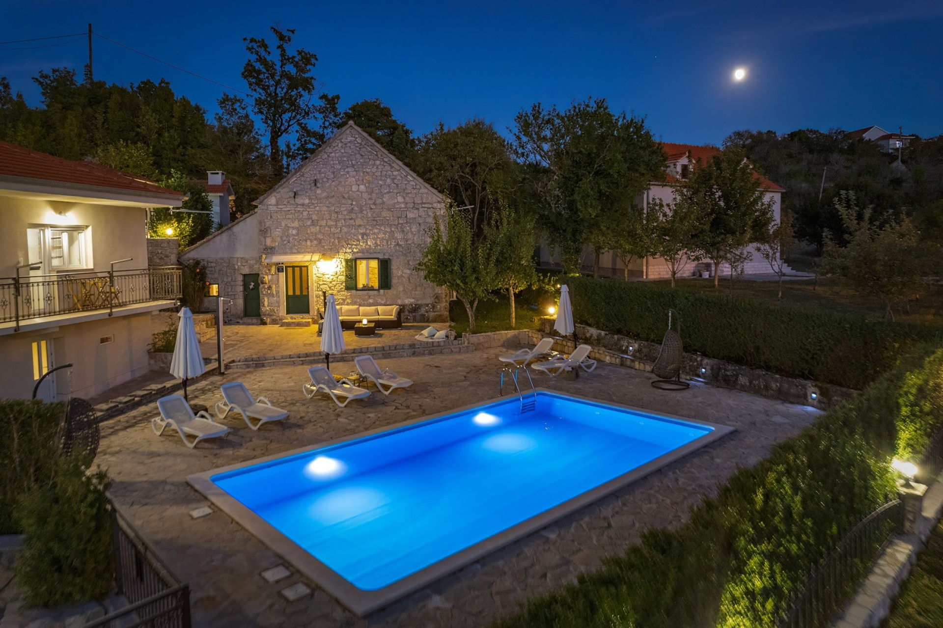 If you want to take a break from your busy lives and escape to a family-friendly, spacious, and cozy villa, this is the villa for you. It offers a perfect balance of traditional and modern ways to vacation, in a very secluded and quiet neighborhood of Omiš and the Makarska hinterland. Villa Sylvia offers accommodation for 10 people, including 4 bedrooms, 3 bathrooms, a 45sqm heated pool, a fun zone with Billiards, table Soccer, table Tennis, and PS5.