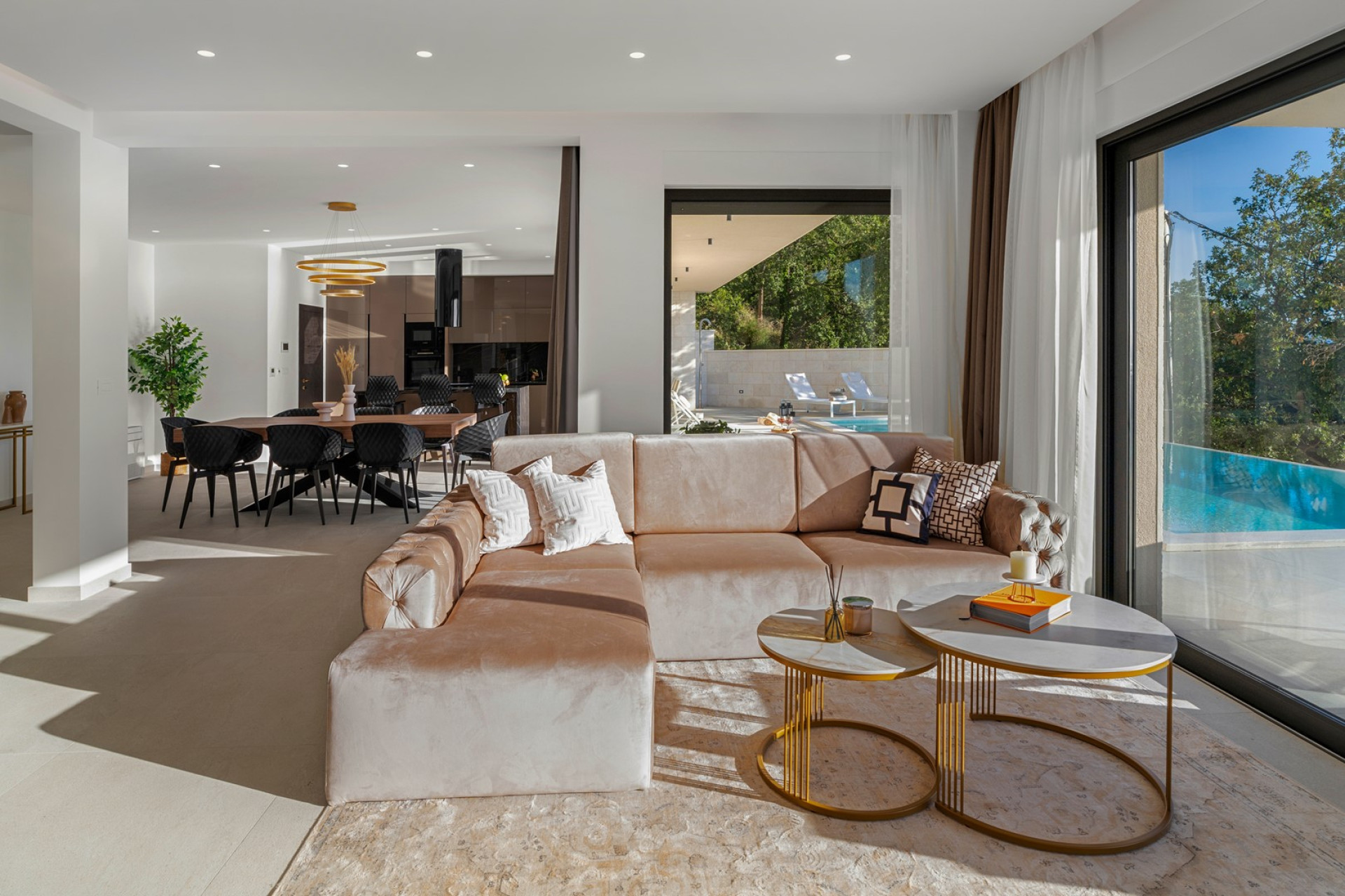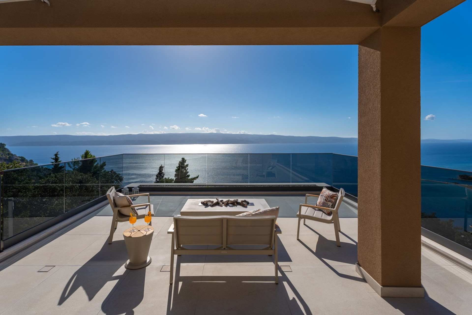 Villa La Mirada is nestled on a 751 sqm private plot, in a natural oasis only 2km above Omiš town, uphill, offering breathtaking views of the sea, Omiš sandy beach, the islands, and Fortica fortress above. This stunning property offers absolute privacy, a spacious interior, high-end amenities throughout, natural and tranquil surroundings, and amazing, open views. It offers a fully equipped kitchen, spacious living room, 4 en-suite bedrooms each with open sea views, a Wellness with infrared Sauna, a Hot-tub and outdoor fitness equipment. There is also a Media room with comfortable sofas, surround system, and PS5 ideally designed for relaxing with family and friends.