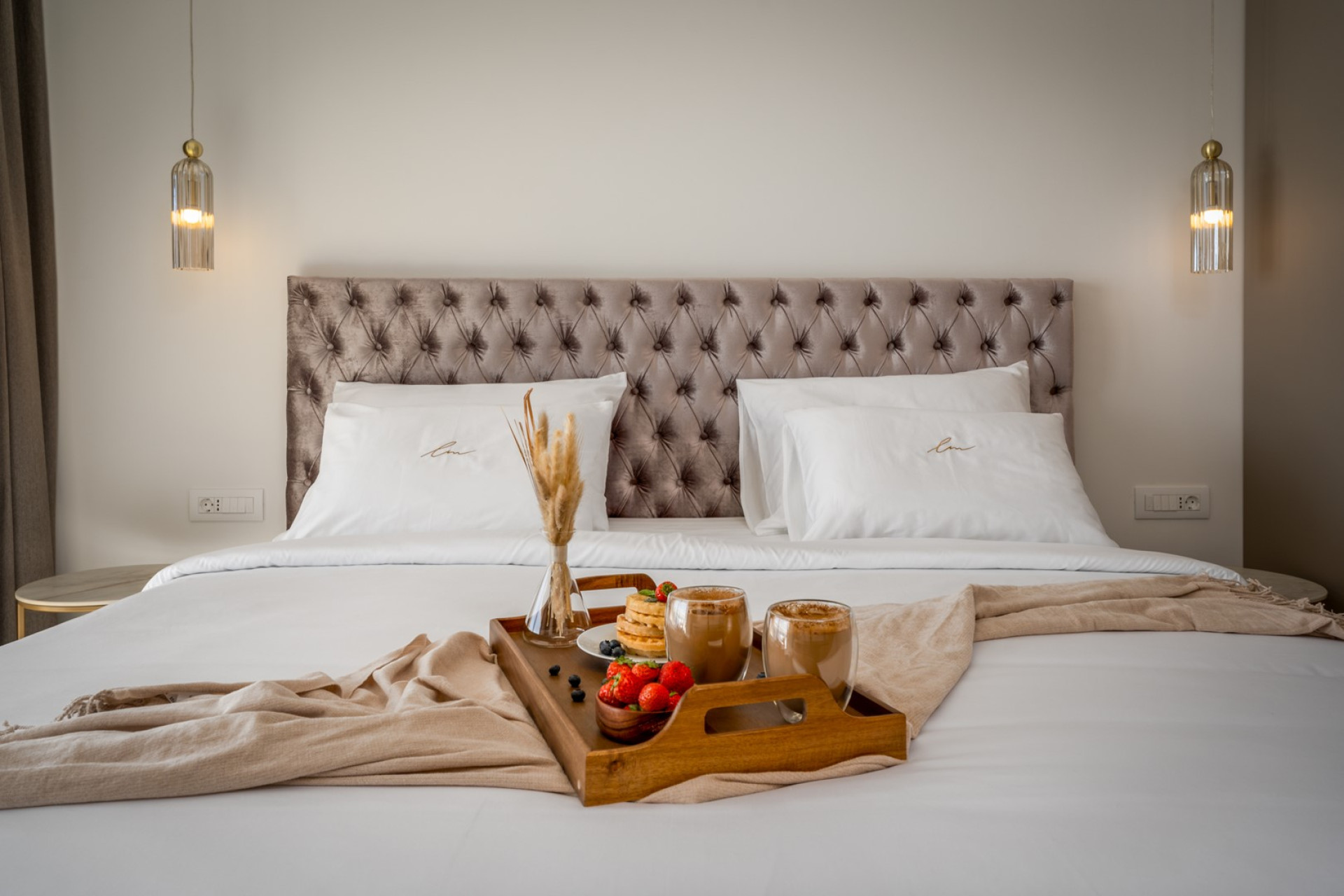 * The First floor offers a sleeping area with 4 bedrooms each with sea and pool views. Bedroom No1 (28 sqm) super king size bed 200cm x200cm, en-suite bathroom with a shower, a minibar, A/C, a TV, and a terrace with outdoor furniture. Bedroom NO2 (22 sqm) with super king-size bed 200cm x 200cm, en-suite bathroom with a shower, a mini-bar, A/C, a TV, and a balcony. Bedroom NO3 (22 sqm) with king-size bed 180cm x 200cm, en-suite bathroom with a shower, a mini-bar, A/C, a TV, and a balcony. Bedroom NO4 (28 sqm) with super king size bed 200cm x 200cm, en-suite bathroom with a shower, a mini-bar, A/C, a TV, and a balcony. Following the luxurious feeling that this amazing property provides, each guest will be provided with L`Occitane skincare products together with a bathrobe and slippers for your use during your stay. There is also a laundry with a washing machine and a dryer on the first floor.