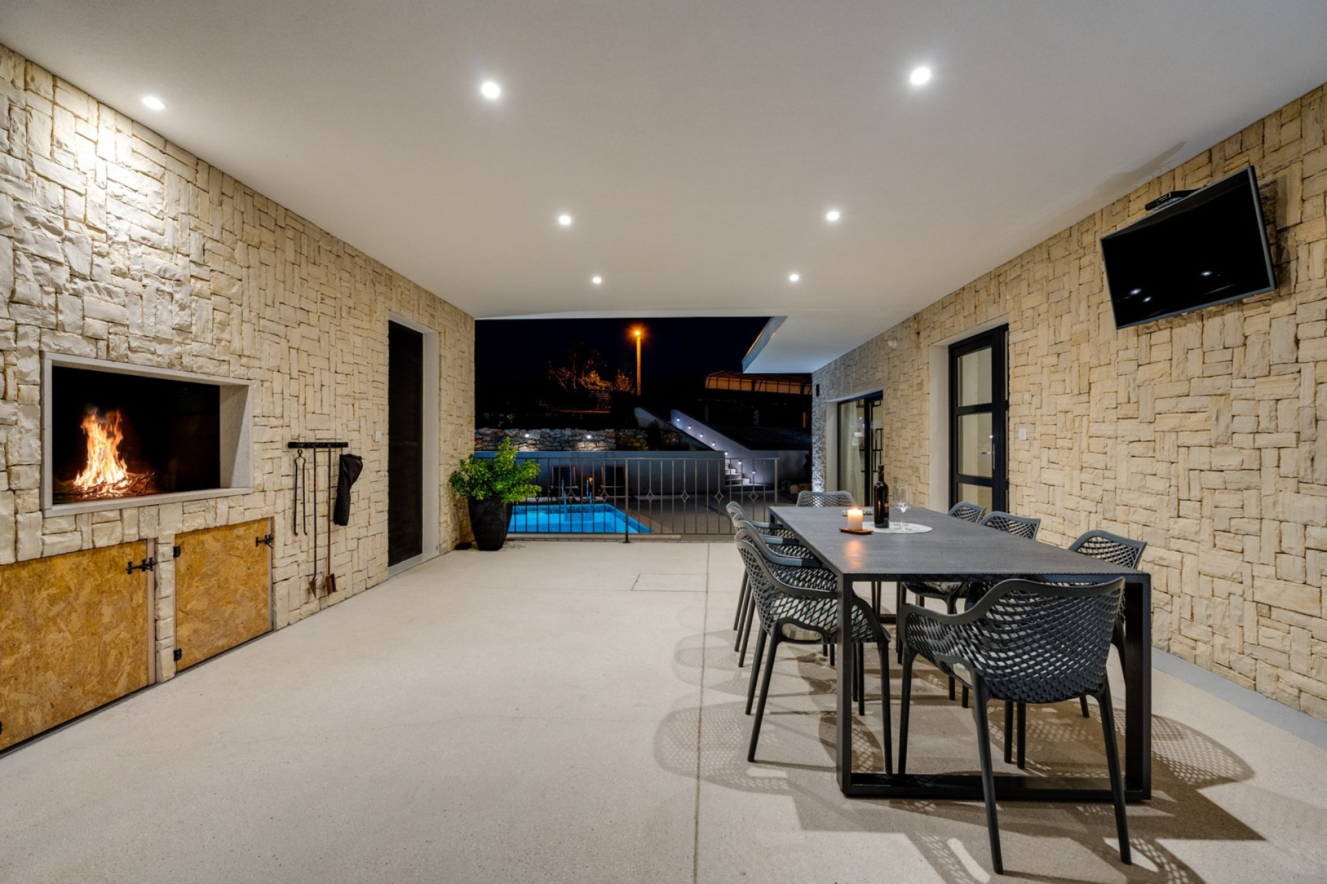Upon arrival, your host will give you much useful information about places to visit, recommended restaurants, possibilities to rent a private boat tour, and have your unforgettable Adriatic adventure visiting island Brač or Hvar, the possibility to order dinner, to arrange a body massage. The outdoor area offers absolute privacy on the 29m2 private heated pool, sun deck area with 6 deck chairs, covered outdoor dining area with TV and traditional barbecue, a summer kitchen next to it, and a playground for your youngest.