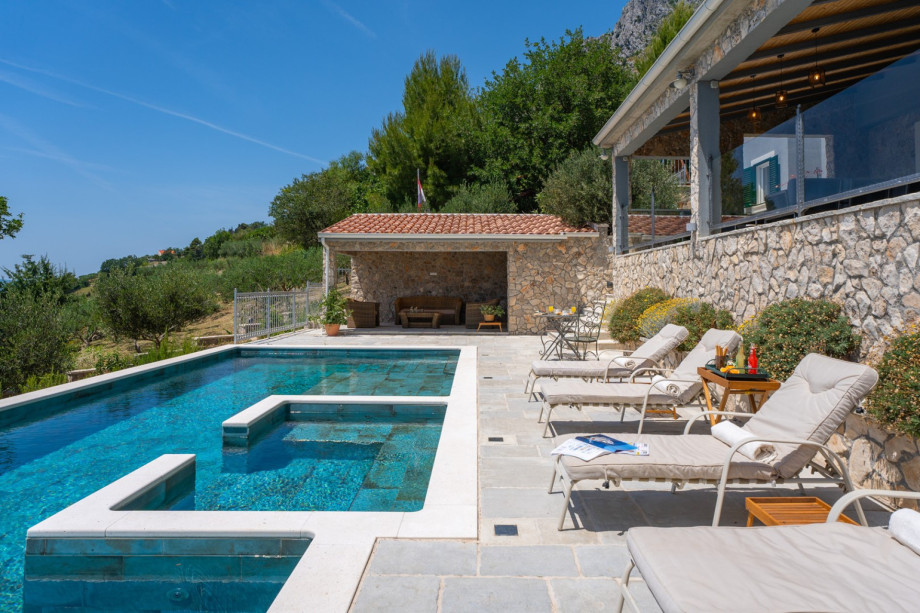 Villa Granda Lokva with 54sqm heated pool, sea views, 10 pax 5 en-suite bedrooms, heated pool with attached hydromassage, spectacular sea views, 1,7km from beach