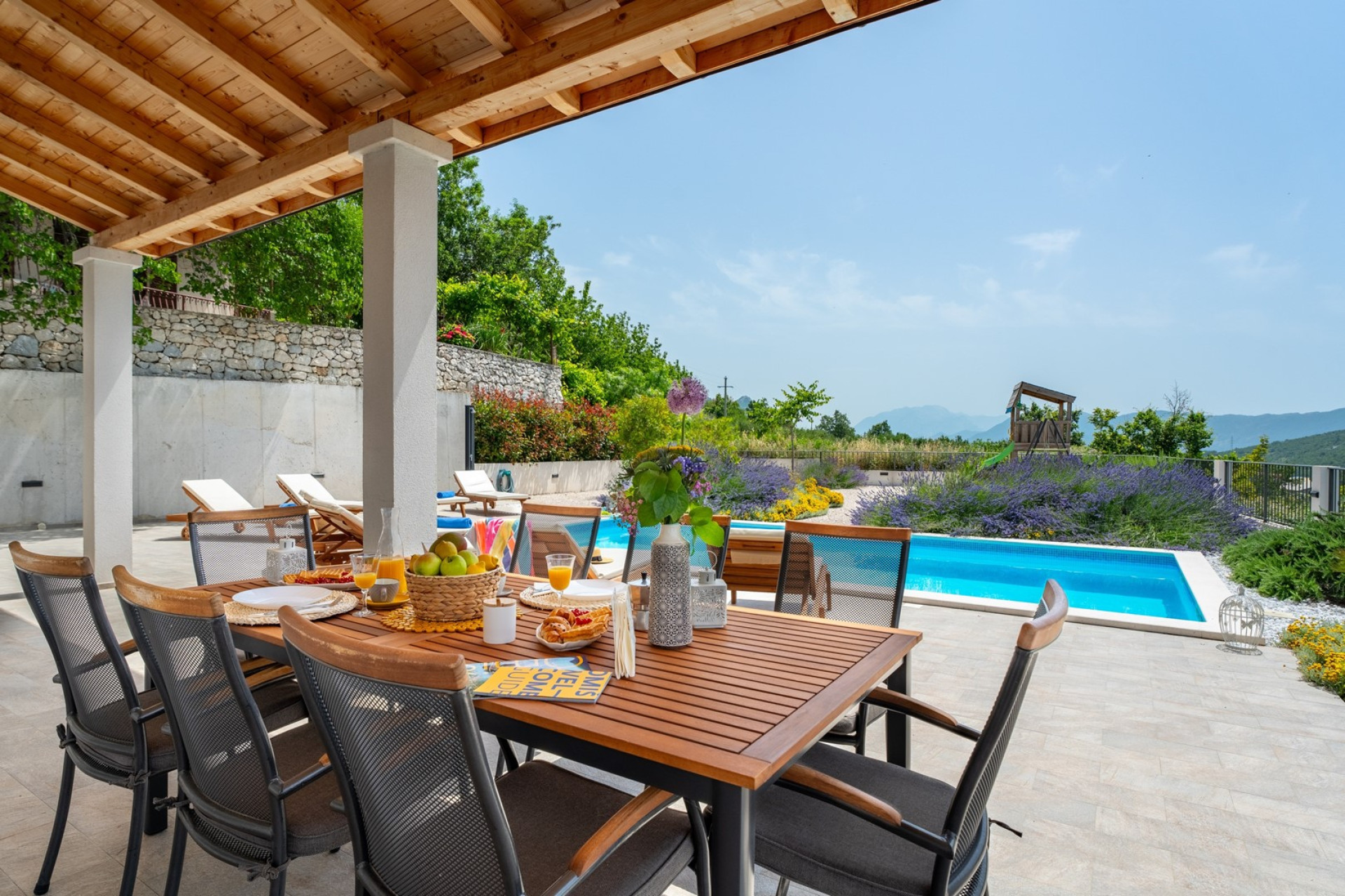 Perfect villa for a family with children. The villa was ideal for our vacation with two families(5adults and 4kids). Spacious combined dining/kitchen/living room area made it easy to prepare and eat breakfast and dinner also with kids hanging around. There were plenty of bedrooms which all had separate bathrooms. The sauna and gym provided some extra luxury. The backyard and pool area was really nice and the view breathtaking. Overall the house and property were very clean and beautifully decorated. Even though the house included all necessities and also some decorative items there was no clutter and the atmosphere throughout the house was very calm and pleasant. The hosts were very friendly and helpful. We felt welcome right from the start and they were also available for support during our stay. The location was perfect if you are looking for some peace and quiet outside town. The view and atmosphere in the side of the mountain was an experience itself. We really enjoyed our stay!