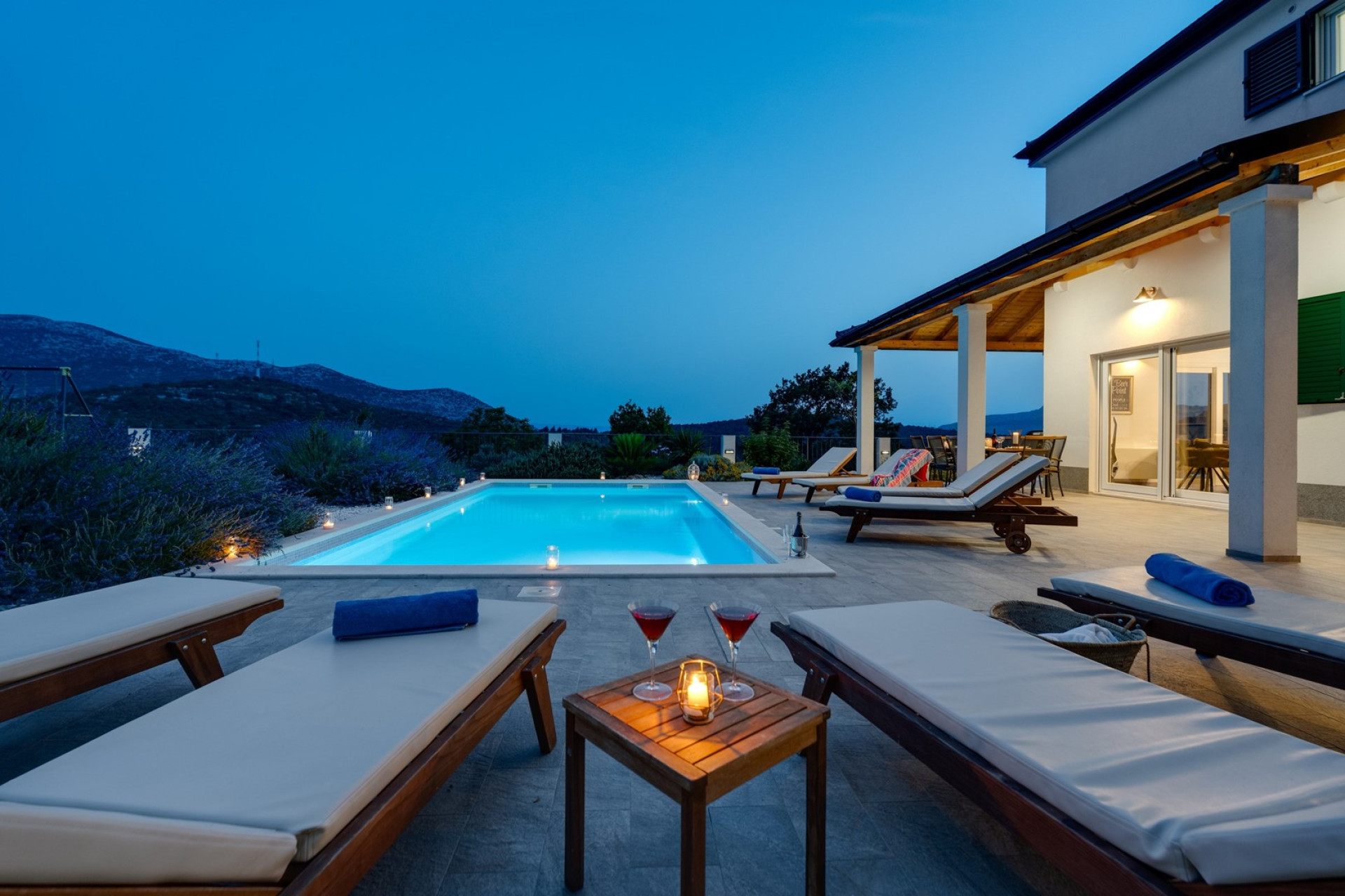 Villa Belina offers spacious (360 sqm), fully air-conditioned accommodation for 10 people in 4 spacious bedrooms each with en-suite bathrooms and with balcony, a game room with PS4, spacious kitchen with living and dining area, glass wall toward the pool area. Outdoor offers heated, private pool 8x4m, sun deck area, outdoor dining area with BBQ.