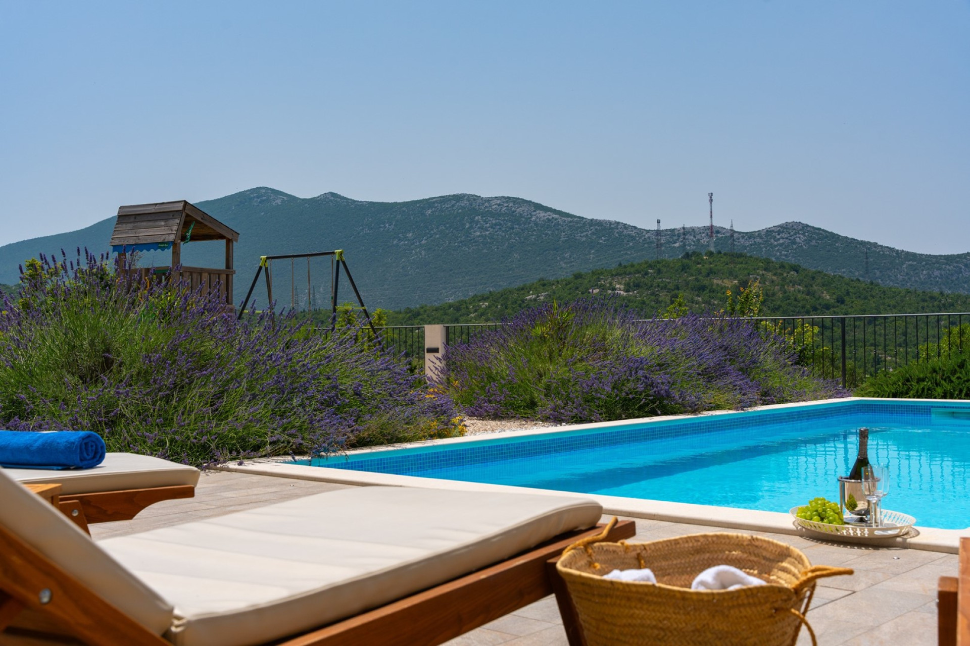 On arrival we were warmly greeted by the owners, Dragana and her husband and shown around their beautiful home. The generous welcome pack included local cheese, sausage, bread, fruit and wine. The Villa and grounds are immaculately clean and furnished and finished to a very high standard and equipped with everything you might need and more. Dragana personally maintained the pool and outside area every other day before 7 am so not to disturb us. The gym and large sauna exceeded our expectation and the views of the surrounding mountains and small village were spectacular. The local supermarket was just 5 minutes walk and historic Omis town and beaches a short drive away. We would highly recommend.