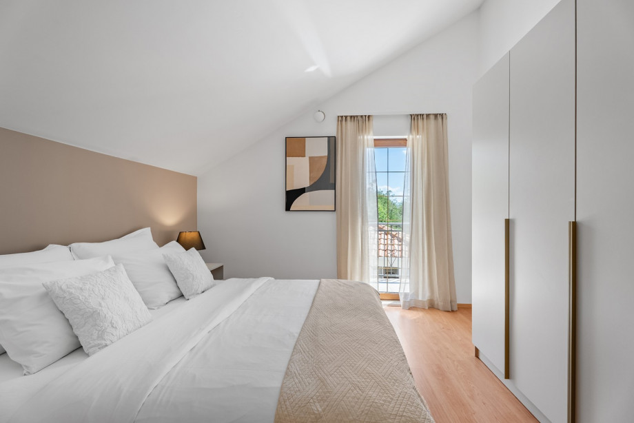 Bedroom No.3 – king-size bed (180x200 cm), en-suite bathroom with shower, and air conditioning and access to a balcony.