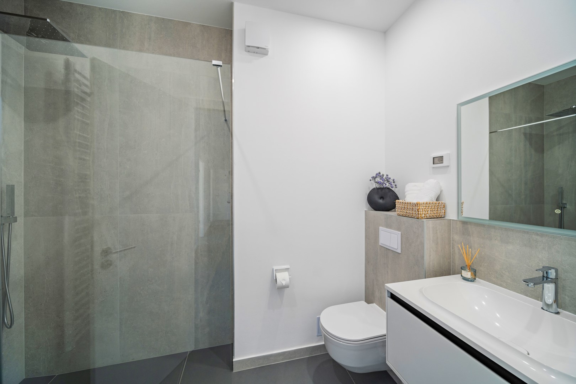 A family bathroom (4,6 sqm) with a shower and a toilet.