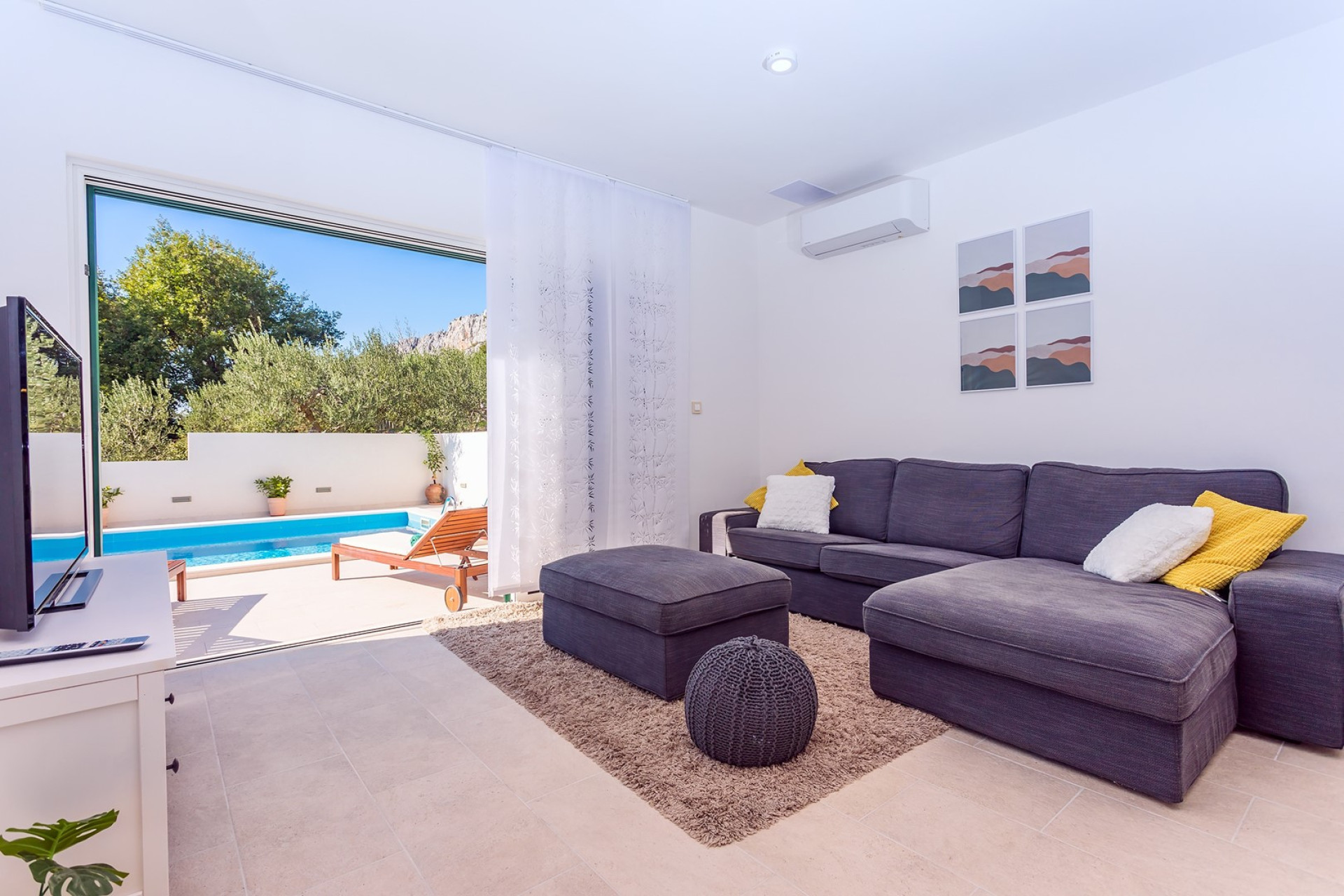 A beautiful small house with an extraordinary view on the mediterranian sea, big pool, good stuff inside the house, very cozy, very lovely. Everything you need is inside and outside the house. It is located up in the hills, its quite and relaxing to stay at Villa Lemaro. Split and Omis are close, Makarska Riviera is nice one hour trip trip with the car. The host is very kind and helpful, and I think we will come back again. Thanks for 2 great weeks in Dalmatia.