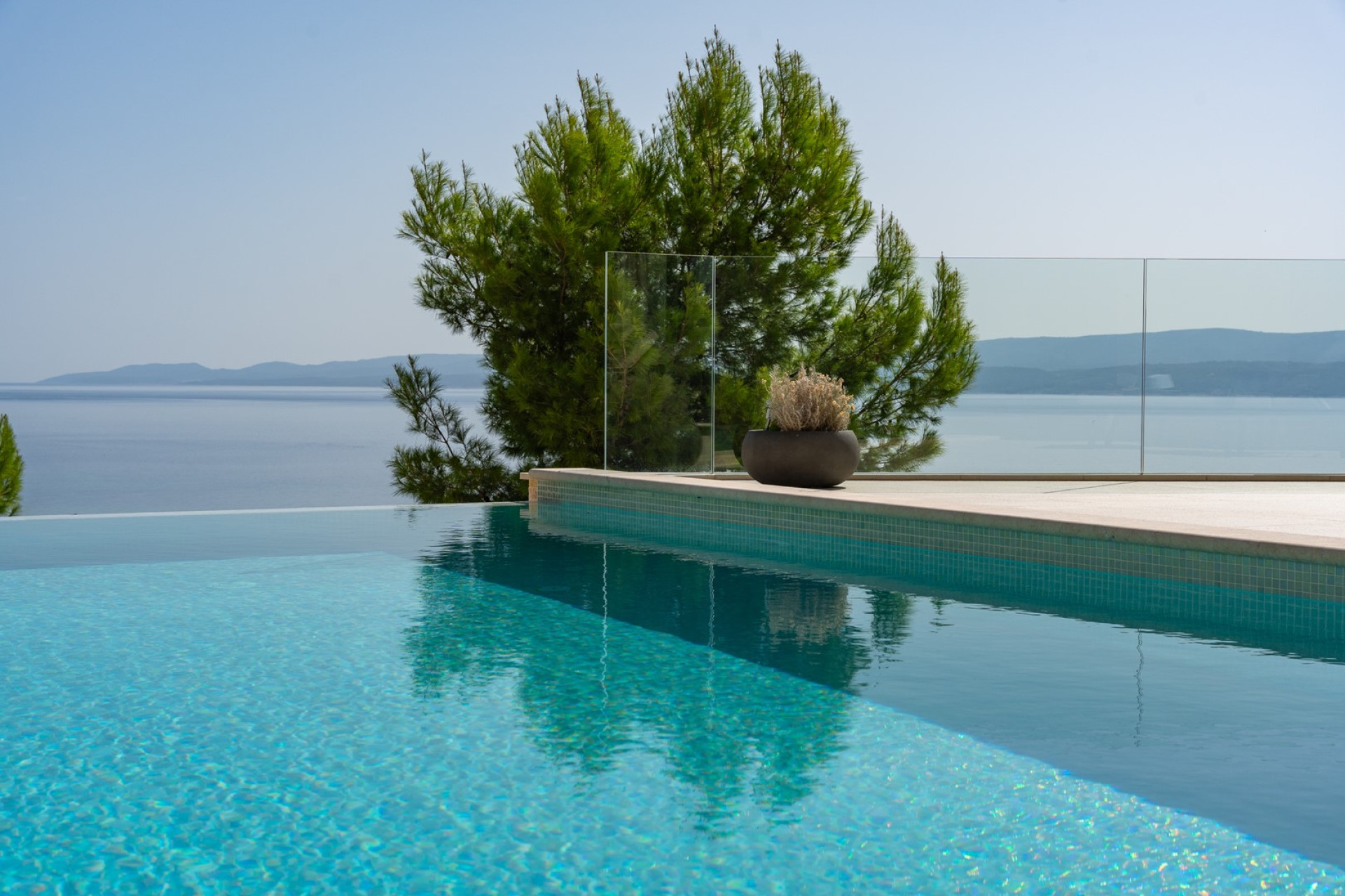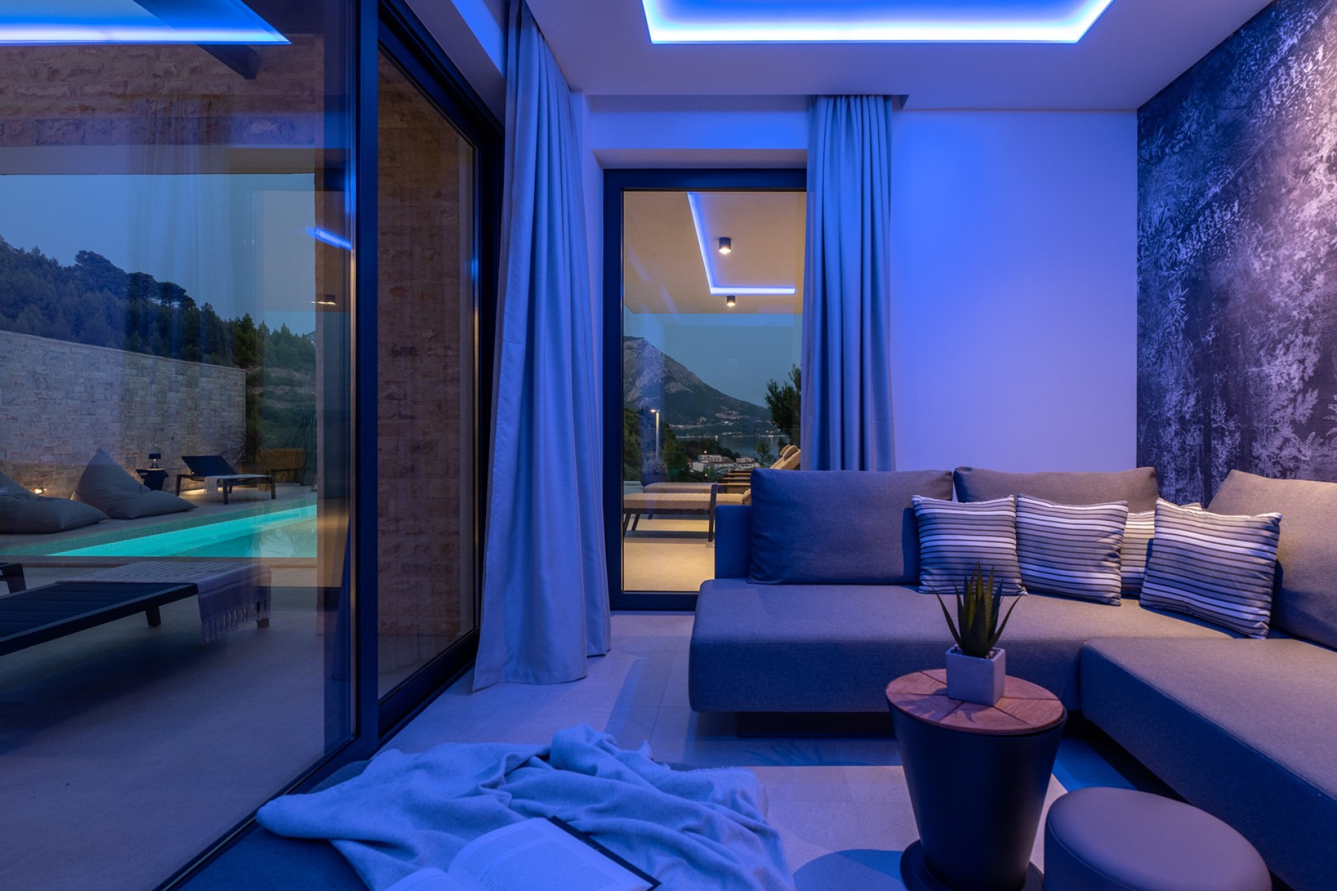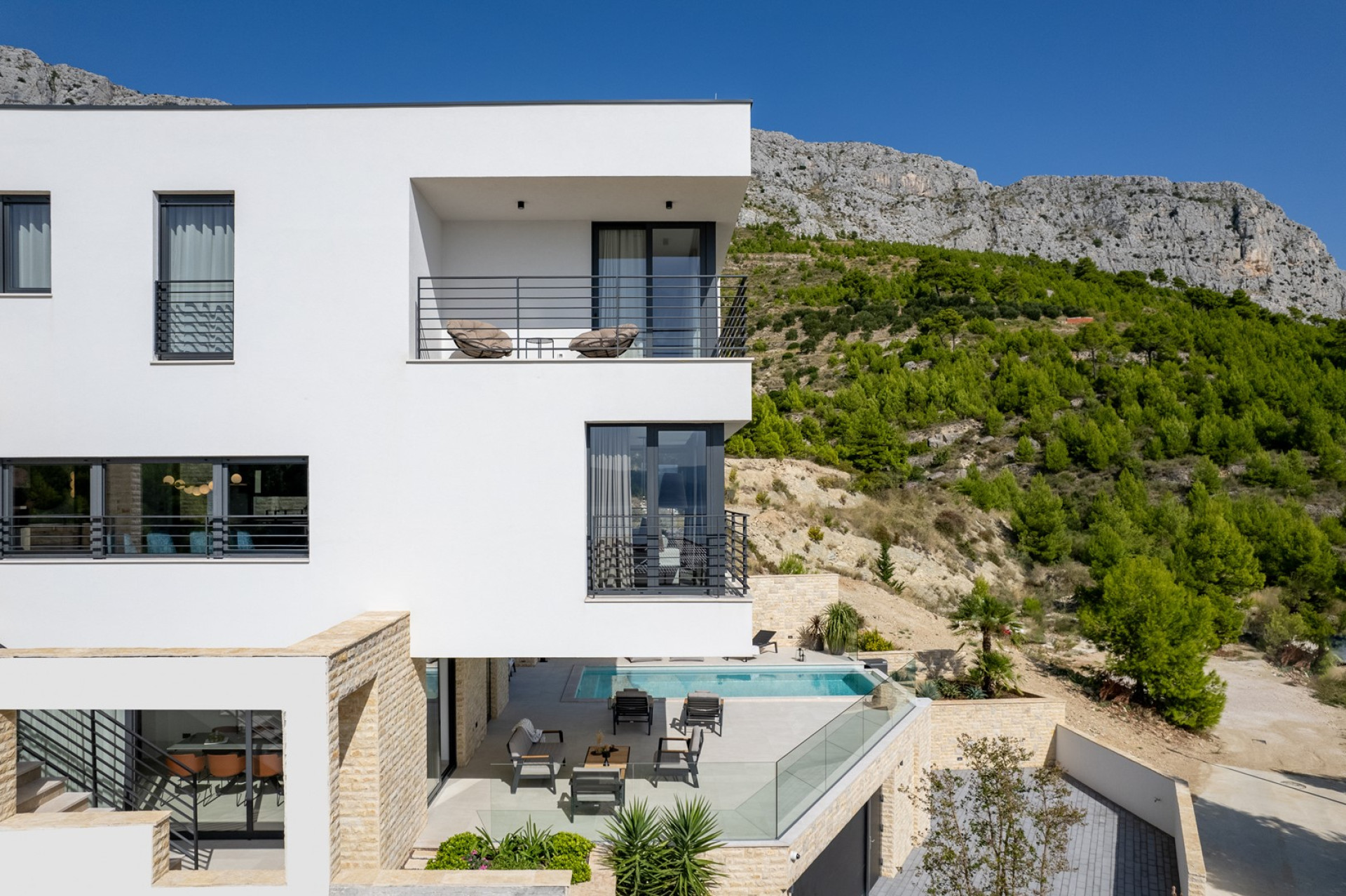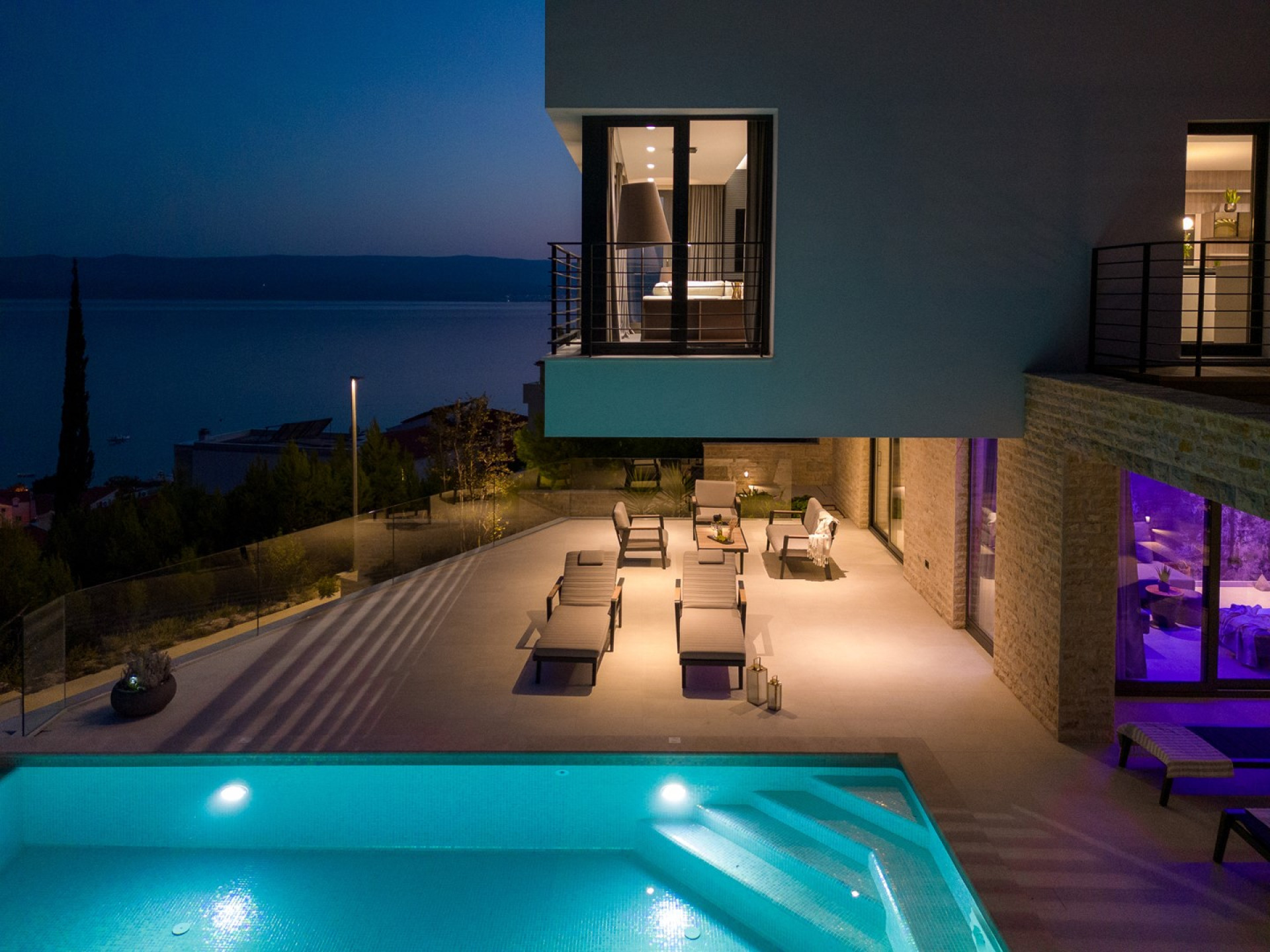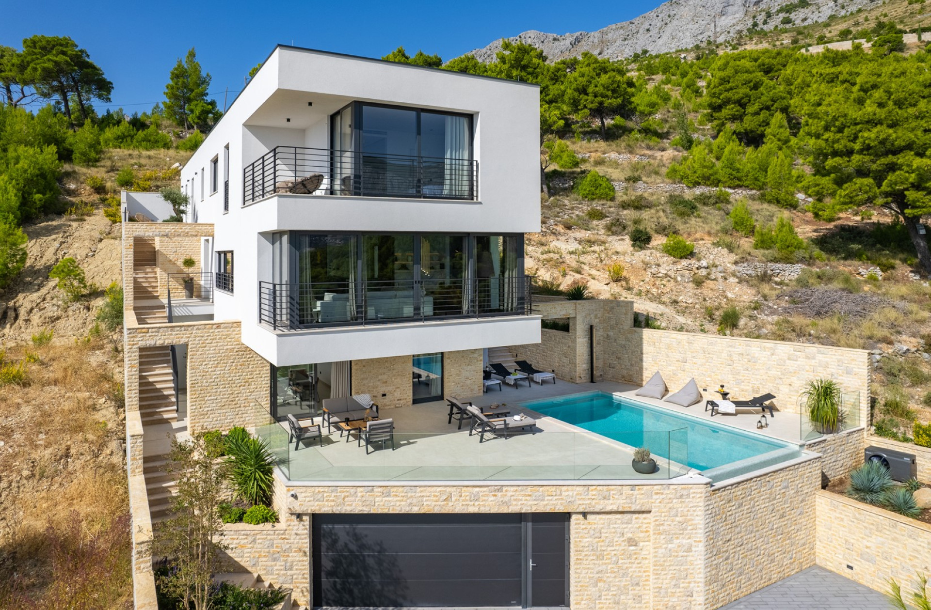 Deluxe 4-bedroom Villa Nitia is a very stylish and high-end villa with open sea and mountain views, spread over 3 levels, and connected with an indoor and outdoor staircase. It offers exclusively for you a 28.5 sqm heated swimming pool with counter-counter swimming program, two sun deck areas, two fully equipped kitchens, two indoor and one outdoor dining area, a very spacious living room, media room with PS5, Finnish sauna, 4 bedrooms, 4 bathrooms, and a laundry room. This beautifully organized property of 380sqm of living space is located on a fully fenced private plot of 720sqm and is equipped with all the necessary facilities that a modern guest needs for a very pleasant stay.