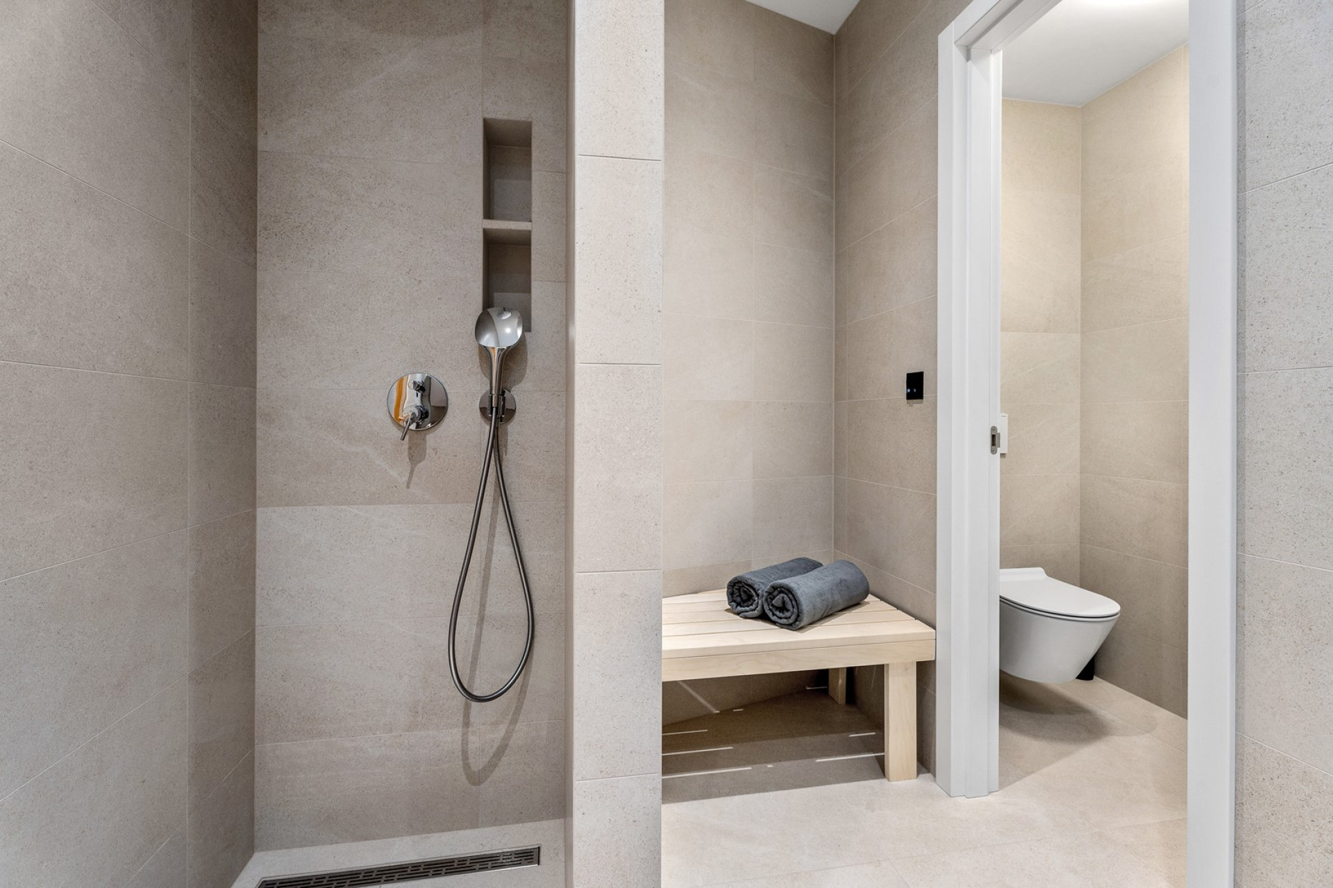 *The outdoor (ground floor level) offers a private, heated 28,5 sqm (7m x 4,5m) swimming pool ( Please note that the pool water temperature, even with heating, can be affected by weather conditions and seasons. Therefore, specific pool temperatures cannot be guaranteed.) , with counter-current swimming program and fully automated salt electrolysis system, 8 deck chairs, outdoor shower, covered and comfortable lounge corner and all with spectacular sea views and mountain views. The sliding door takes you inside to the ground floor kitchen with a fully equipped, elegant private gym. The space is designed to combine top functionality with top design, and each device is carefully selected from the range of the renowned NOHrD brand, known for top-quality workmanship, innovation, and the use of natural materials such as walnut wood, to the sauna, and also to the Media room. From the pool area, you can take the outdoor staircase to the traditional barbecue corner for your grill skills together with the outdoor dining table (the door next to it is the main kitchen on the first floor).