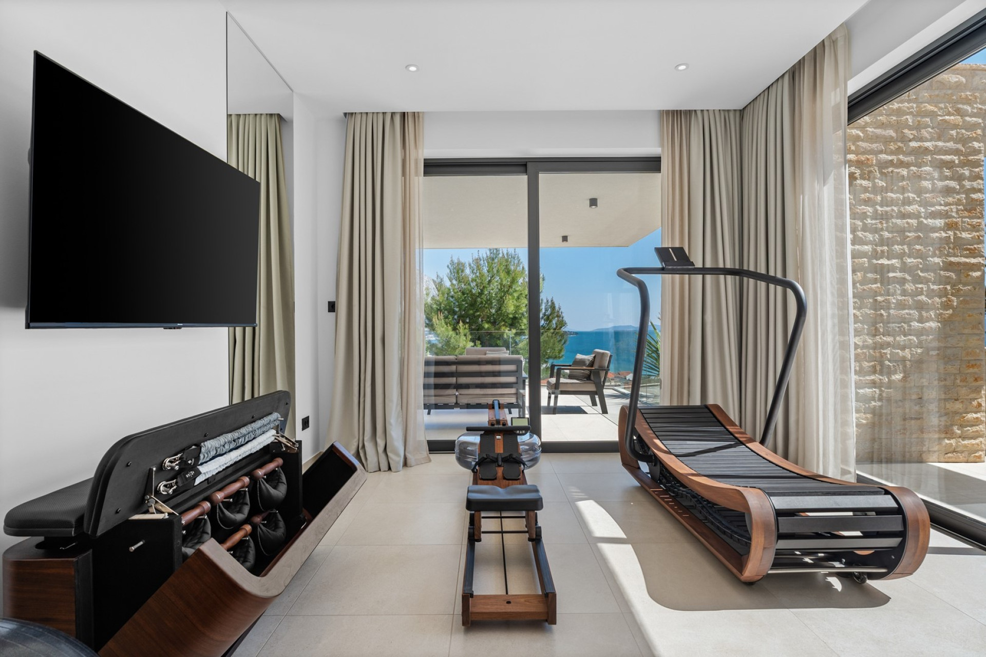 Deluxe Villa Nitia with 4 bedrooms 550m from sandy beach Heated infinity pool, Finnish sauna, Media room, 2 living areas, spectacular sea views, very spacious interior, high-end property Exclusive private gym with NOHrD equipment