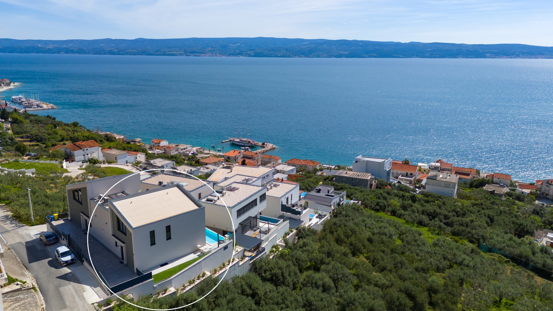 Situated on a fenced 347 square meter lot, Villa Sunshine is a newly built residence featuring three levels and 191 square meters of living space. Situated two kilometers from the sea on a hill in the Krilo Jesenice (Sumpetar) village. It provides beautiful sunsets in a serene environment along with stunning views of the sea and islands. It is recommended to have a car because two cars can be parked in the lot with video surveillance and safety.