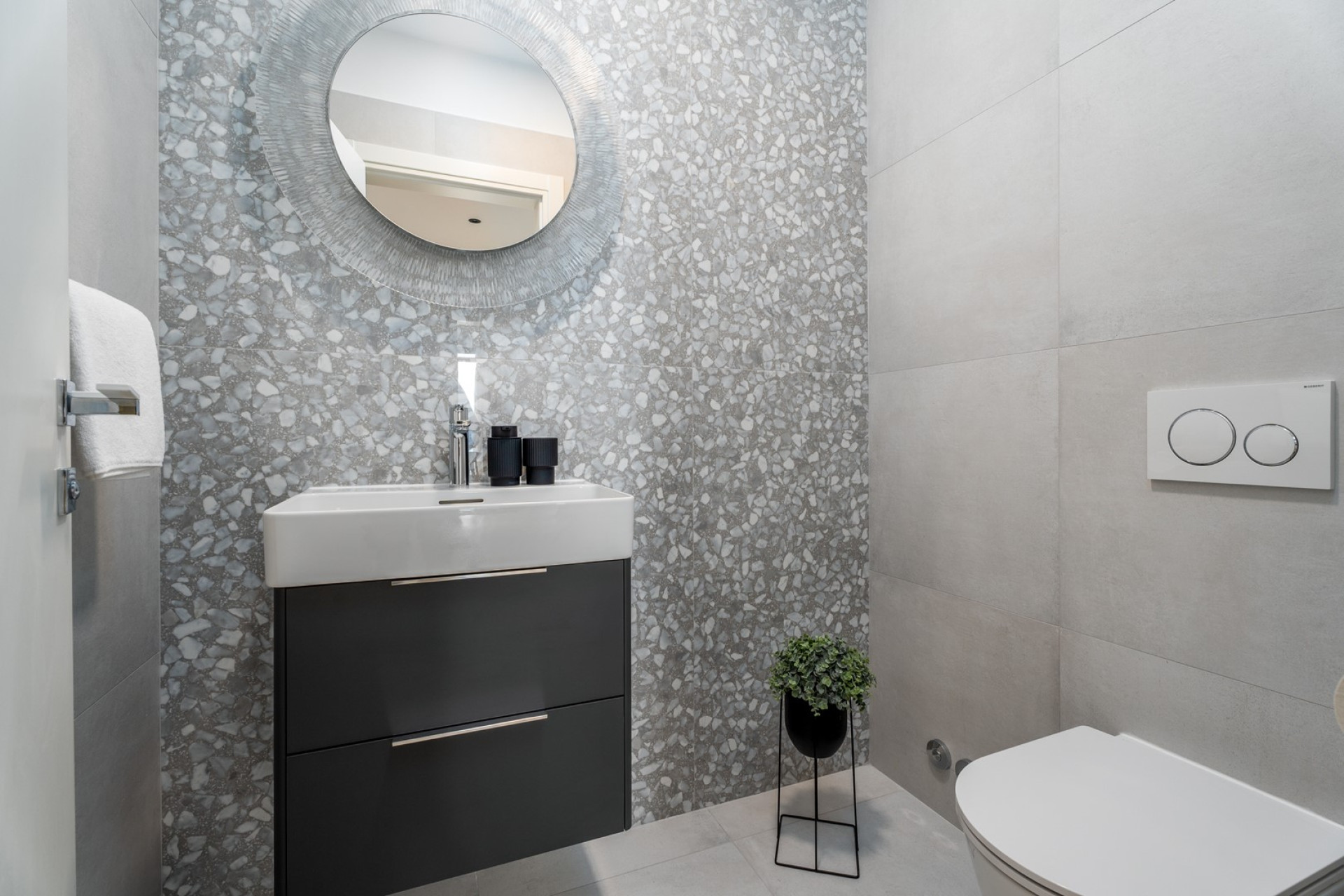 There are two family bathrooms with a shower (each 4,7 sqm) and there is a laundry room with a washing machine and a dryer.