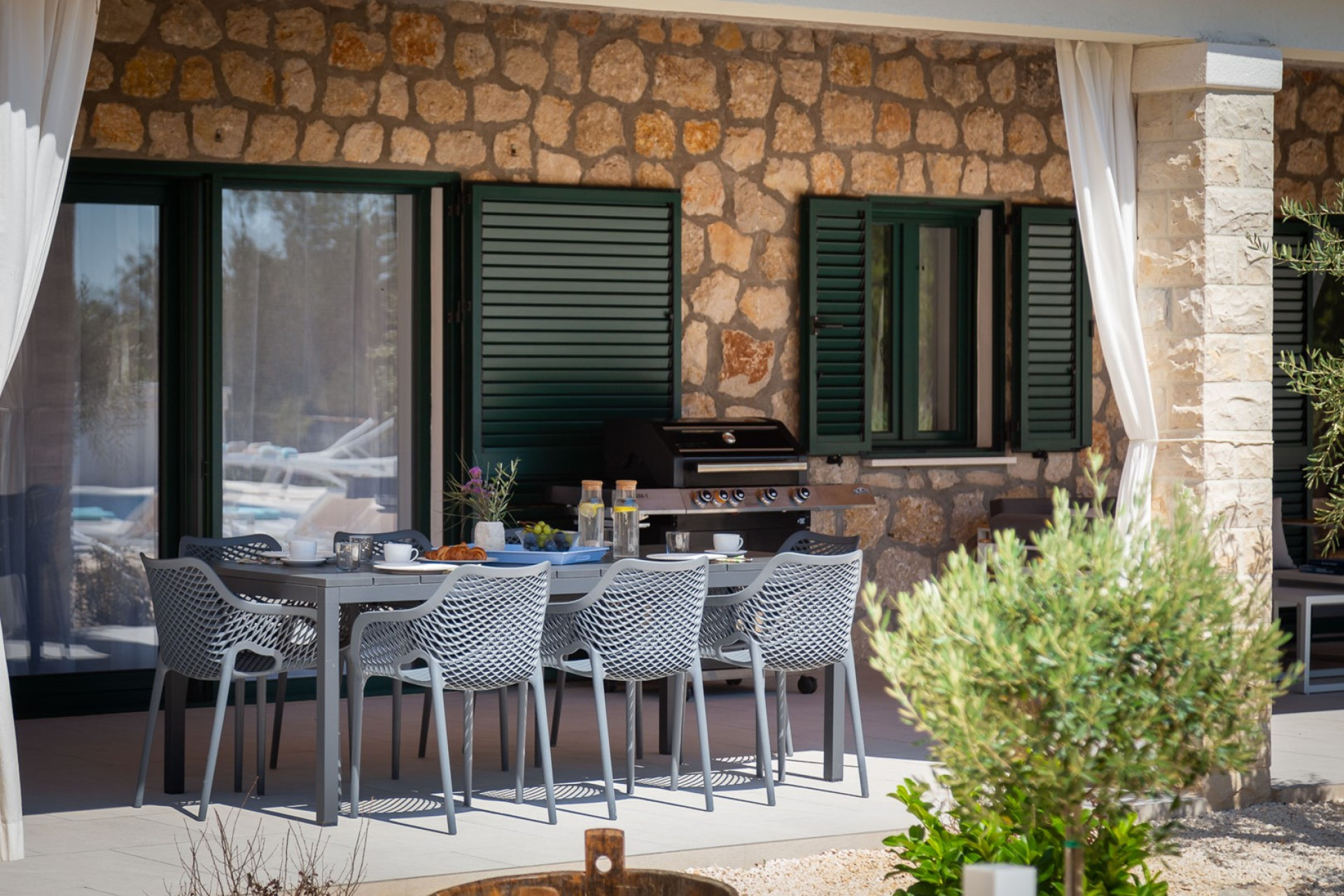 * VILLA No2 offers a spacious covered terrace with a barbecue (gas), an outdoor dining table for 8, and a lounge corner. All settled just next to the swimming pool.