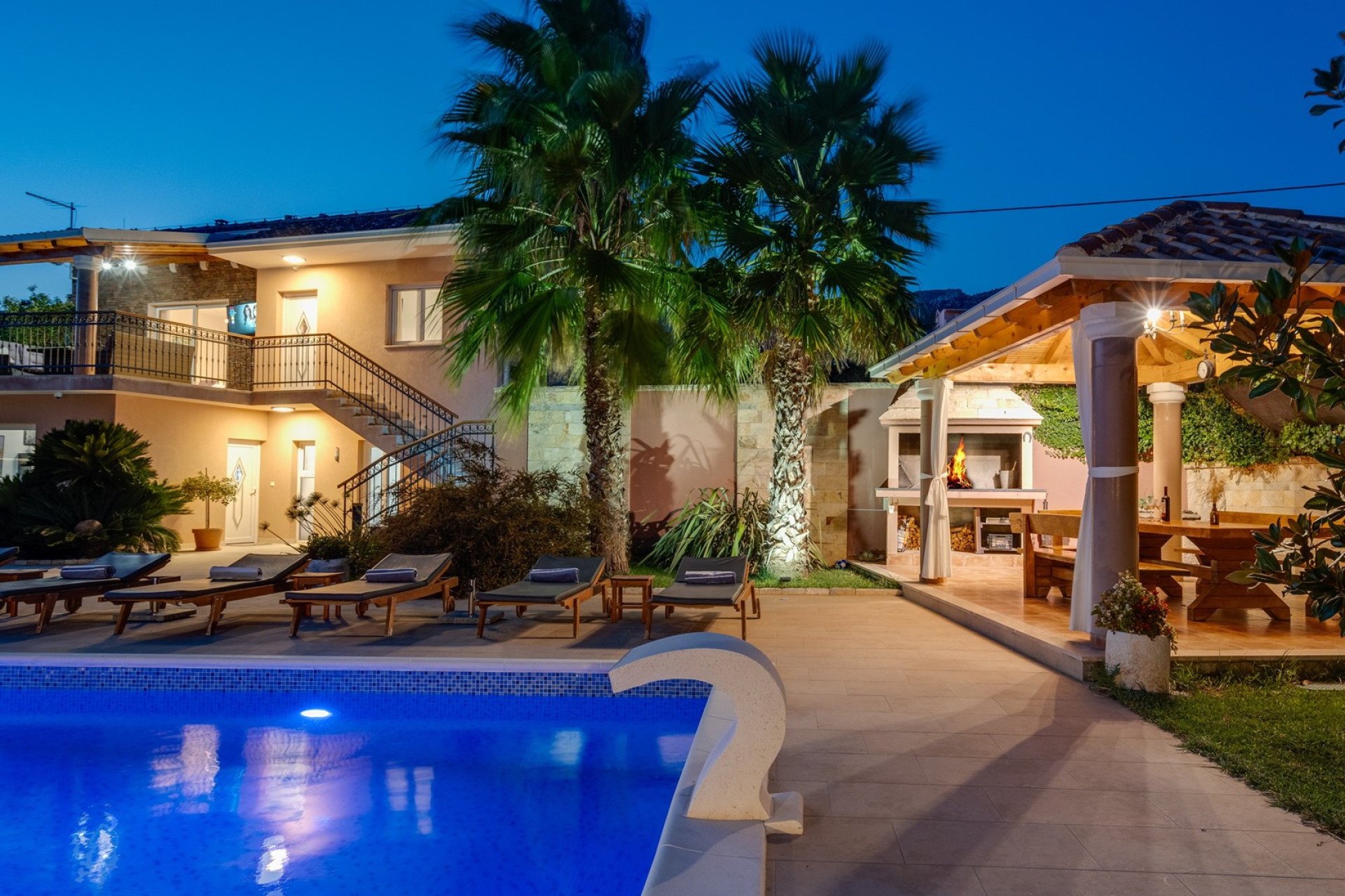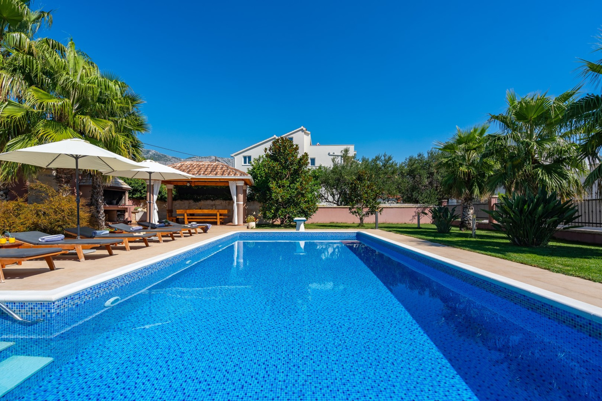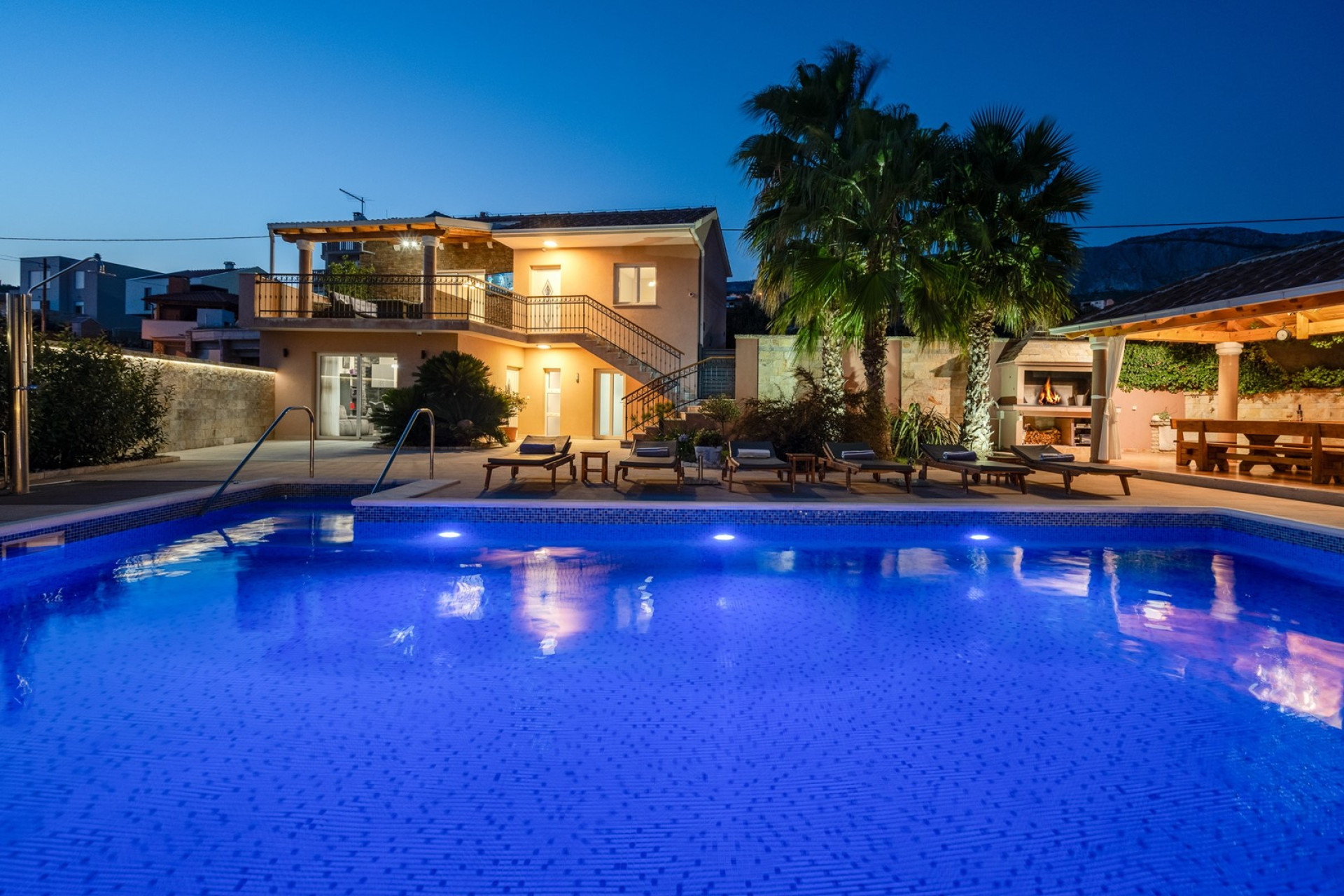 The villa was absolutely stunning with a beautiful pool. The grounds were well kept with plenty of shaded areas and comfortable sun loungers for everyone. Two large outside eating areas and a great bbq. Inside was spotless , large comfortable beds and gorgeous bathrooms. The kitchen has everything you need if you want to cook. Local shop has everything you need (300m) A car is recommended but taxis were good. Petar, the host was so helpful. Fab restaurants in Split, Trogir and Hvar
