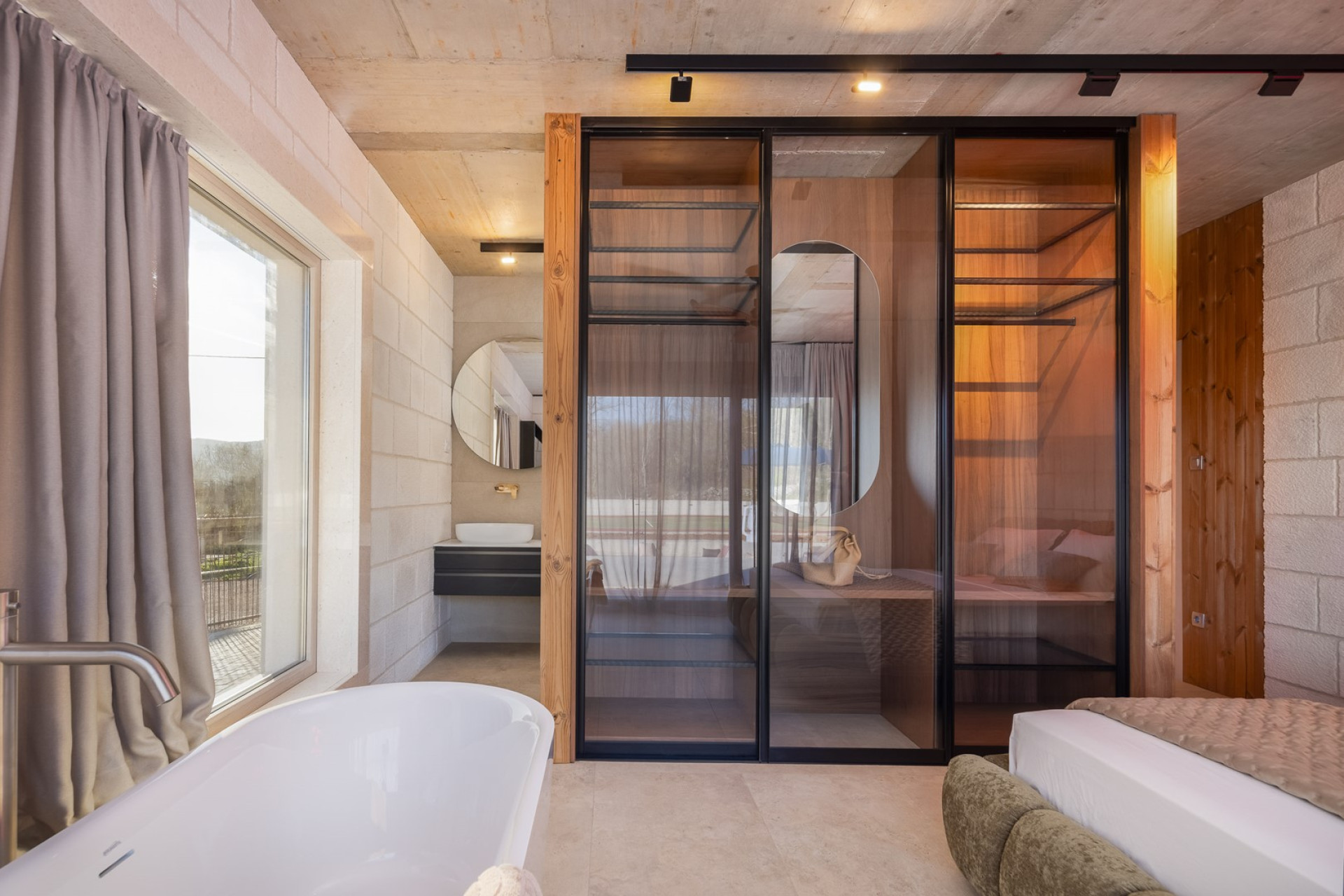 The villa offers 4 elegant en-suite bedrooms, each featuring a luxurious king-size bed (180 cm x 200 cm), a TV, air-conditioning, and direct access to the pool area. The Master bedroom is a true sanctuary, complete with an en-suite bathroom that includes both a shower and a freestanding bathtub, along with a glass door leading directly to the pool.
