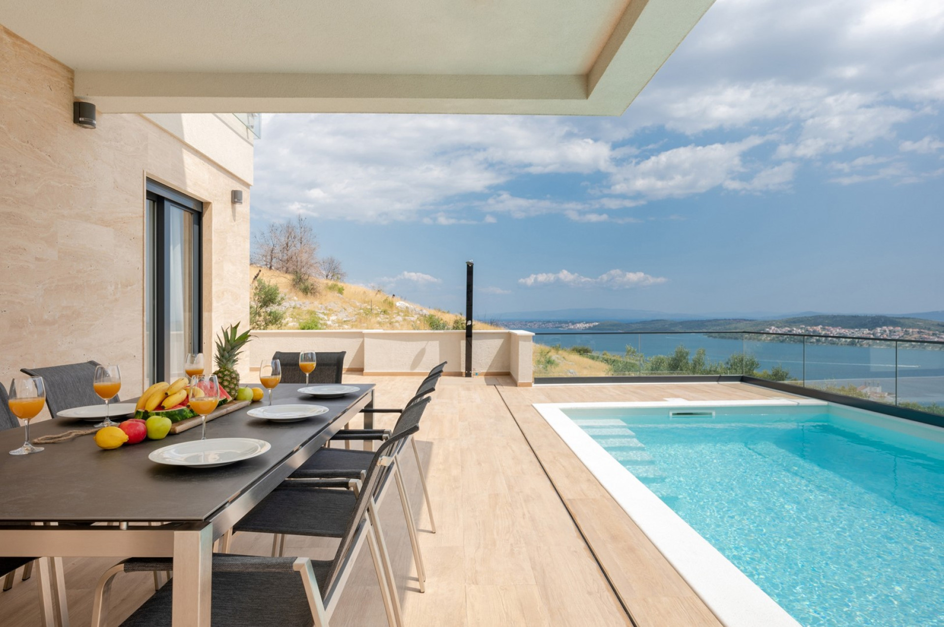 NEW Villa Astera -heated pool, 4 bedrooms, and sea views 4-bedroom villa with private 28sqm pool, 2,5km from the beach and 7km from Trogir town