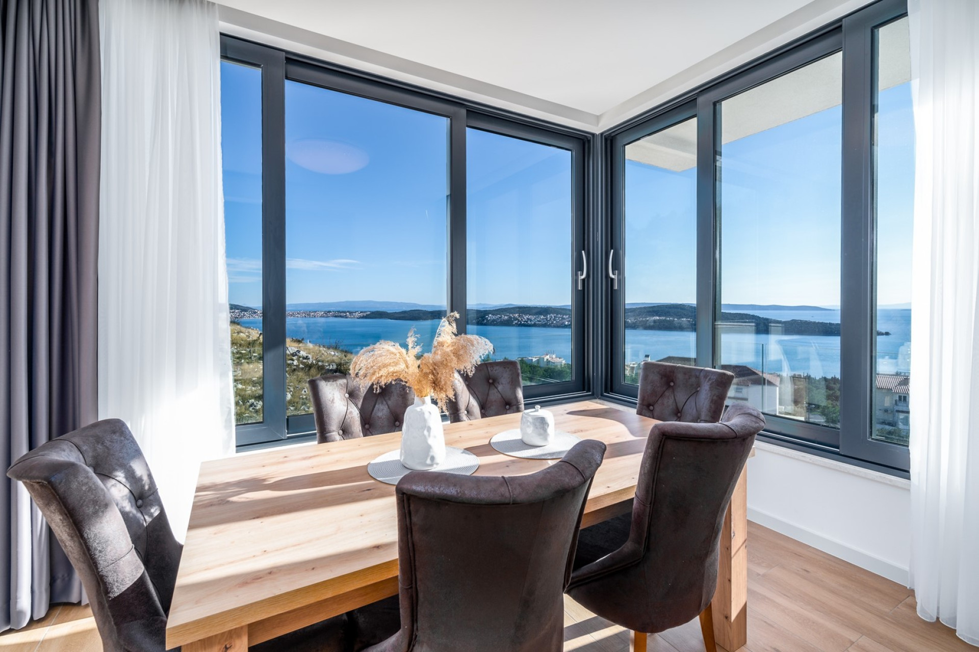 Villa ASTERA is a newly built accommodation located in Seget Donji near Trogir town and offers a very comfortable and spacious interior of 328 sqm located on a fenced plot of 501 sqm. It offers all needed for a perfect and relaxed vacation for a maximum of 8 people, and it is furnished with high-quality, bedrooms with very comfortable mattresses, it is fully air-conditioned and with free Wi-Fi. Organized on 3 levels, villa Astera offers 4 bedrooms, two fully equipped living areas, a private swimming pool with a sun deck area, and here is an amazing sea view from the whole property. There are 3 parking spaces secured on the private property - fenced.