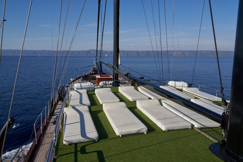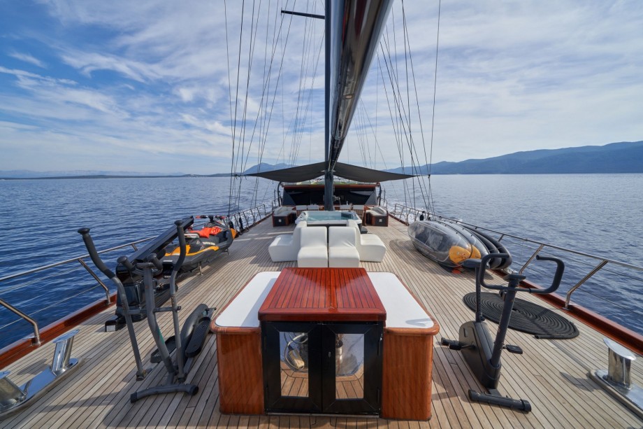 - Wide deck area with jacuzzi and gym on the bow, and numerous lounging areas to relax and enjoy.