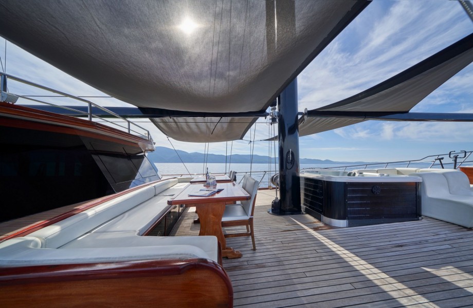 - Beautifully designed and perfectly maintained luxury gulet. Classic design, wide stern, tall black masts, and polished wood, all make this beauty stand out at sea.